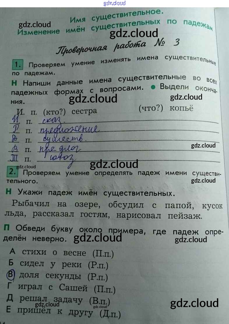 Ответы к варианту 1 (Страницы) по Русскому языку 4 класс Проверочные и контрольные работы Бунеева Школа 2100 Часть 1, 2 Баласс