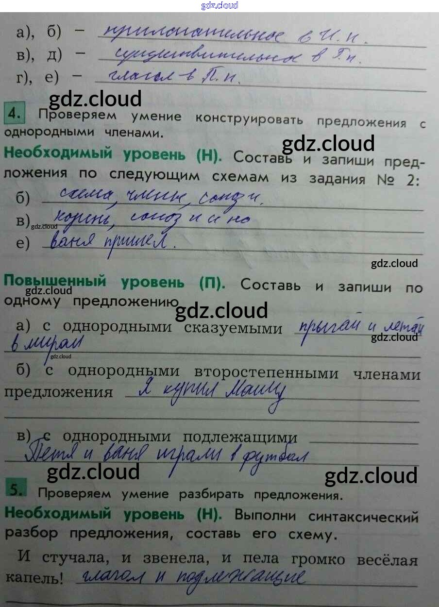 Ответ на задание 5 Проверочные и контрольные работы Русский язык за 4 (четвертый) класс Бунеева Школа 2100 2017 Часть 1, 2