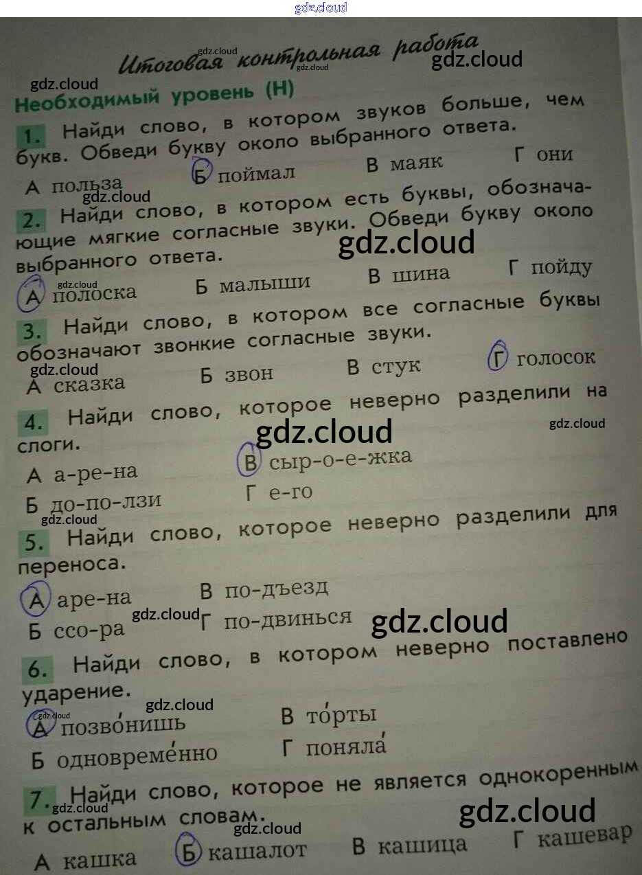 Ответы к варианту 2 (Страницы) по Русскому языку 4 класс Проверочные и контрольные работы Бунеева Школа 2100 Часть 1, 2 Баласс