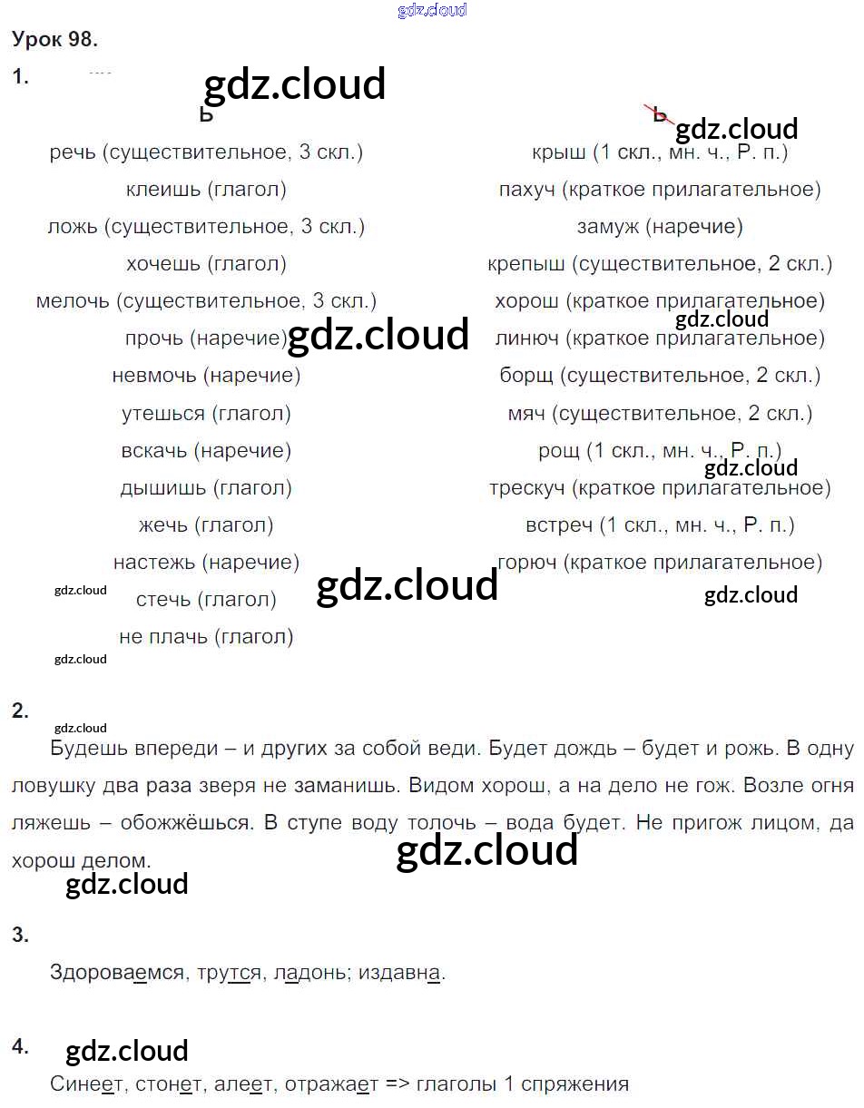 Ответ на задание 98 Учебник Русский язык за 4 (четвертый) класс Иванов, Кузнецова, Петленко Начальная школа XXI века 2013 Часть 1, 2