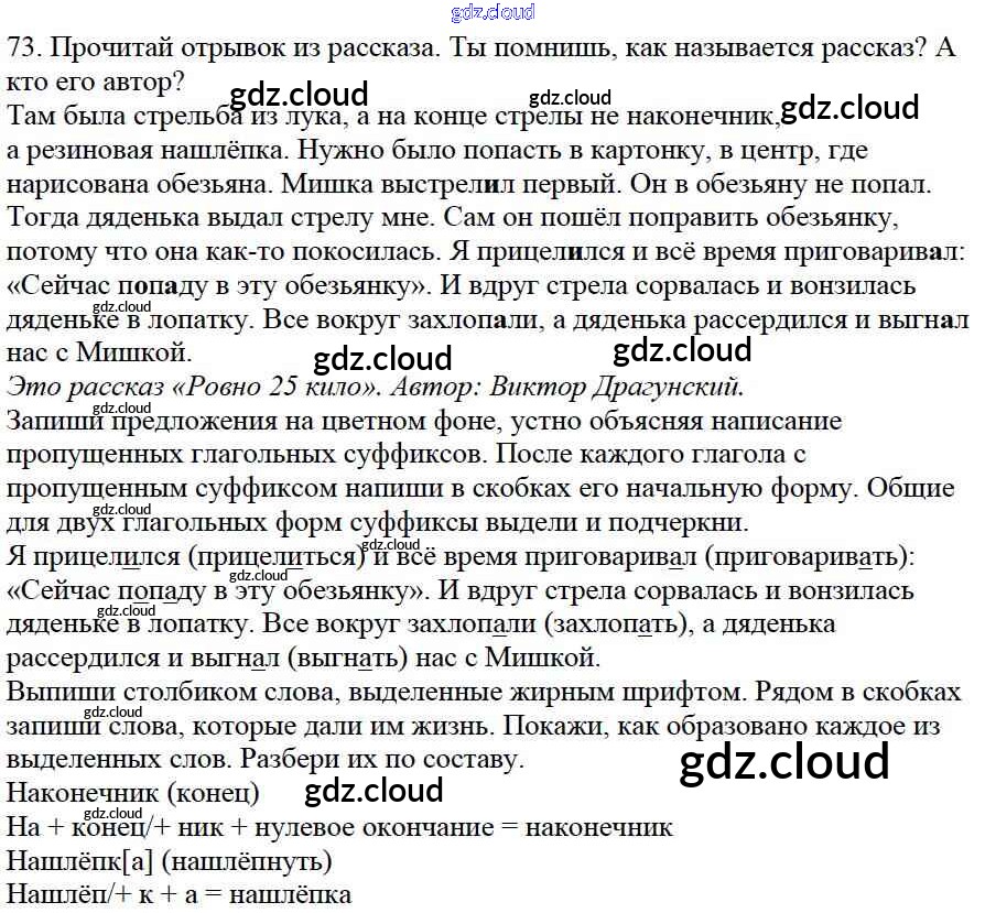 Ответ на задание 73 Учебник Русский язык за 4 (четвертый) класс Каленчук, Чуракова, Байкова Перспективная начальная школа 2016 Часть 1, 3