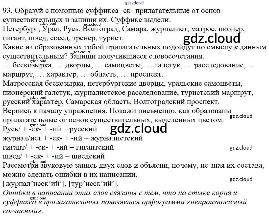 Ответ на задание 93 Учебник Русский язык за 4 (четвертый) класс Каленчук, Чуракова, Байкова Перспективная начальная школа 2016 Часть 1, 3