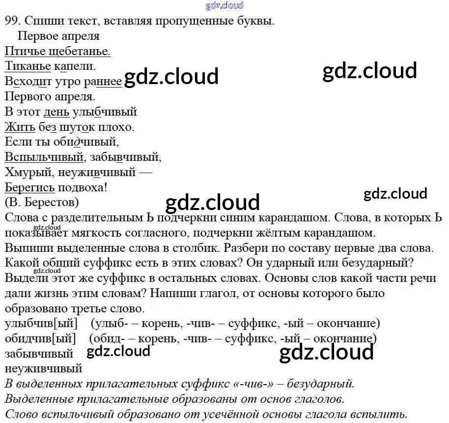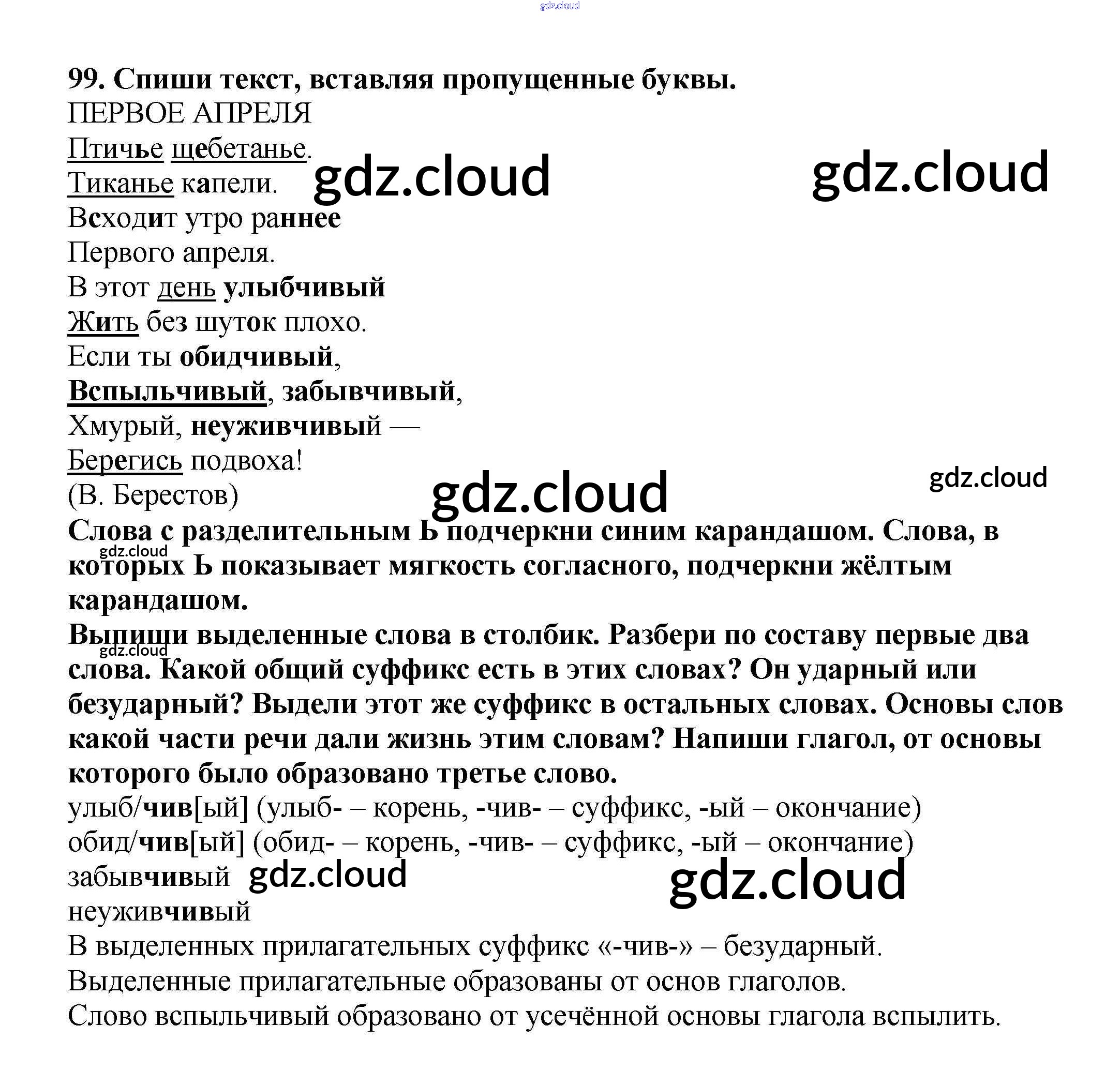 Ответ на задание 99 Учебник Русский язык за 4 (четвертый) класс Каленчук, Чуракова, Байкова Перспективная начальная школа 2016 Часть 1, 3