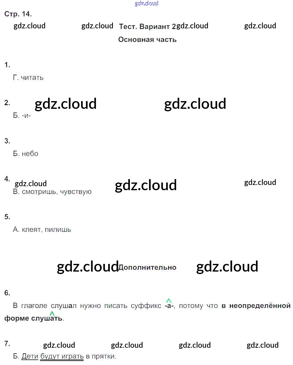 Ответ на задание 14 Тесты и самостоятельные работы для текущего контроля Русский язык за 4 (четвертый) класс Калинина, Желтовская Планета знаний 2017
