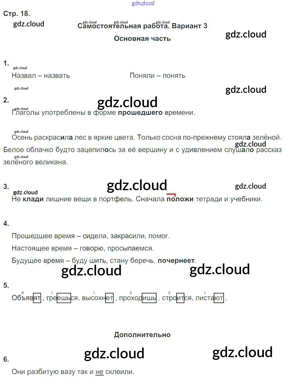Ответ на задание 18 Тесты и самостоятельные работы для текущего контроля Русский язык за 4 (четвертый) класс Калинина, Желтовская Планета знаний 2017