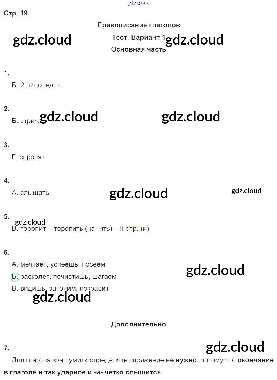 Ответ на задание 19 Тесты и самостоятельные работы для текущего контроля Русский язык за 4 (четвертый) класс Калинина, Желтовская Планета знаний 2017