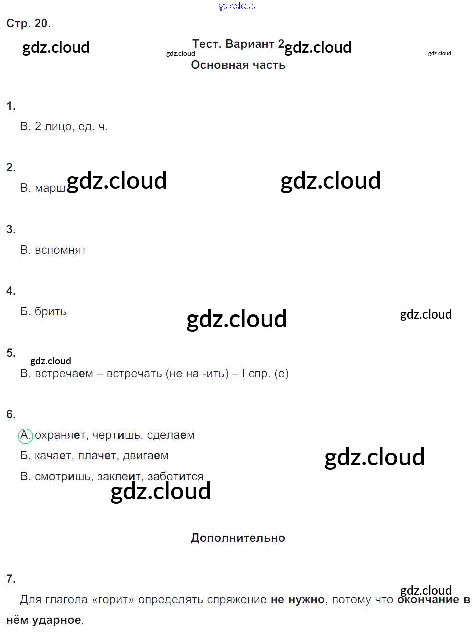 Ответ на задание 20 Тесты и самостоятельные работы для текущего контроля Русский язык за 4 (четвертый) класс Калинина, Желтовская Планета знаний 2017