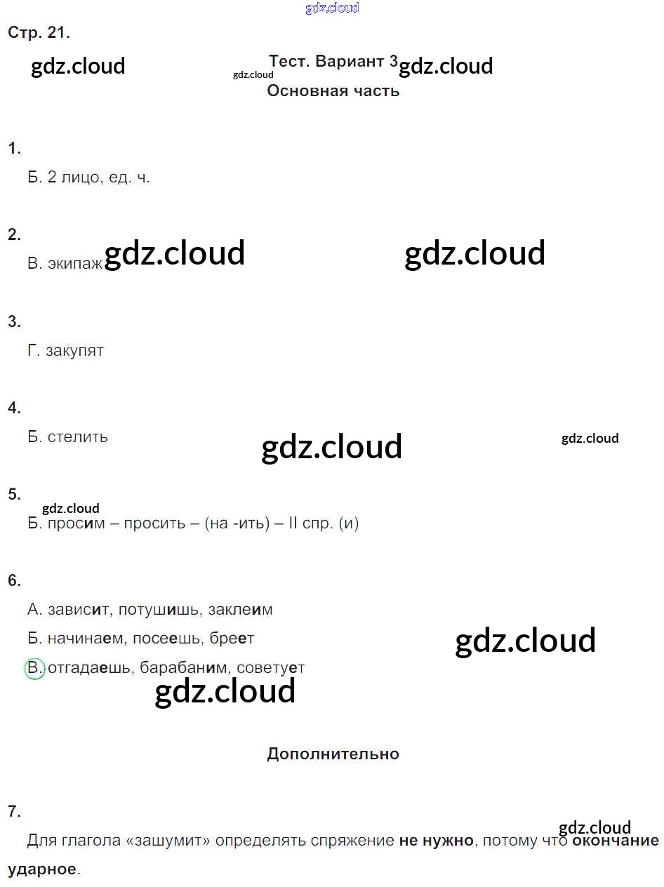 Ответ на задание 21 Тесты и самостоятельные работы для текущего контроля Русский язык за 4 (четвертый) класс Калинина, Желтовская Планета знаний 2017