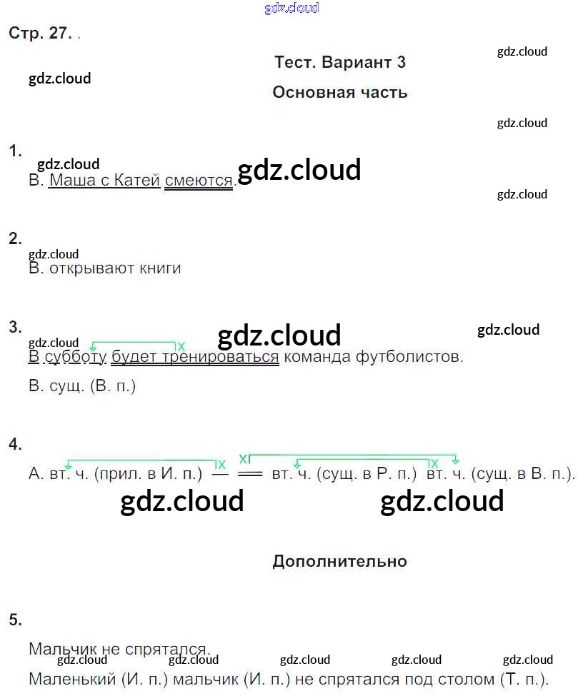 Ответ на задание 27 Тесты и самостоятельные работы для текущего контроля Русский язык за 4 (четвертый) класс Калинина, Желтовская Планета знаний 2017
