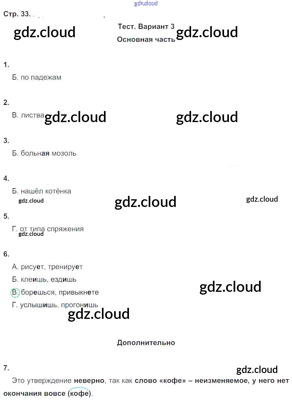 Ответ на задание 33 Тесты и самостоятельные работы для текущего контроля Русский язык за 4 (четвертый) класс Калинина, Желтовская Планета знаний 2017