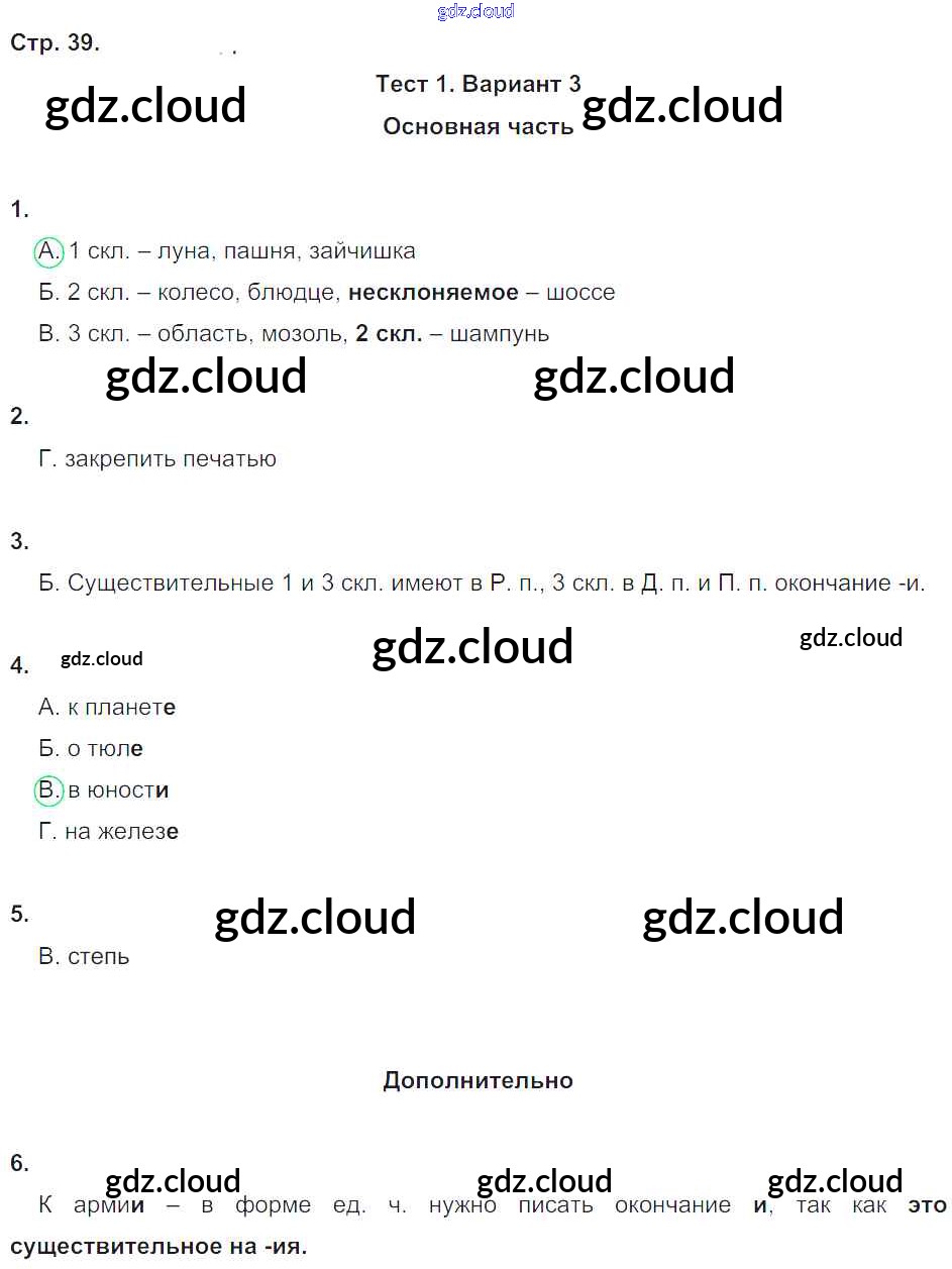 Ответ на задание 39 Тесты и самостоятельные работы для текущего контроля Русский язык за 4 (четвертый) класс Калинина, Желтовская Планета знаний 2017