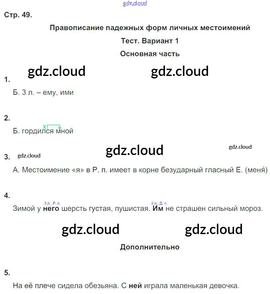Ответ на задание 49 Тесты и самостоятельные работы для текущего контроля Русский язык за 4 (четвертый) класс Калинина, Желтовская Планета знаний 2017