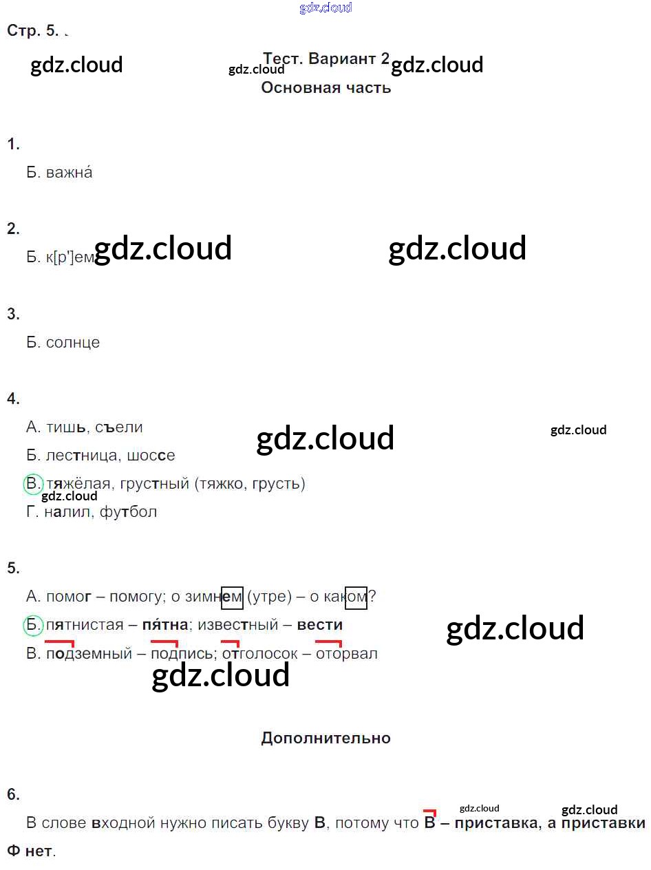 Ответ на задание 5 Тесты и самостоятельные работы для текущего контроля Русский язык за 4 (четвертый) класс Калинина, Желтовская Планета знаний 2017