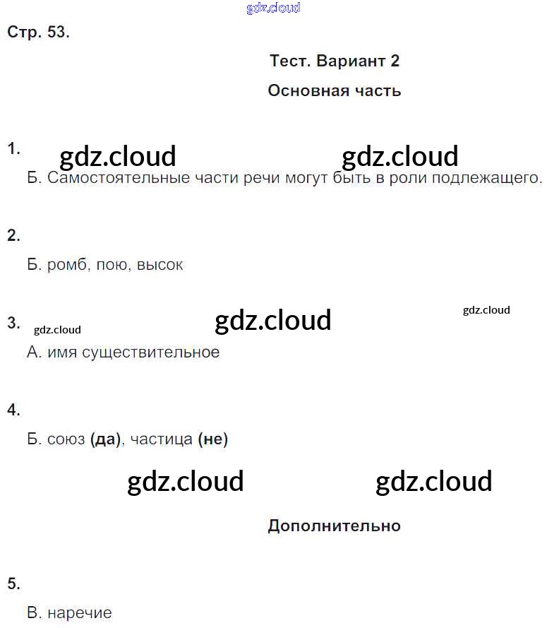 Ответ на задание 53 Тесты и самостоятельные работы для текущего контроля Русский язык за 4 (четвертый) класс Калинина, Желтовская Планета знаний 2017