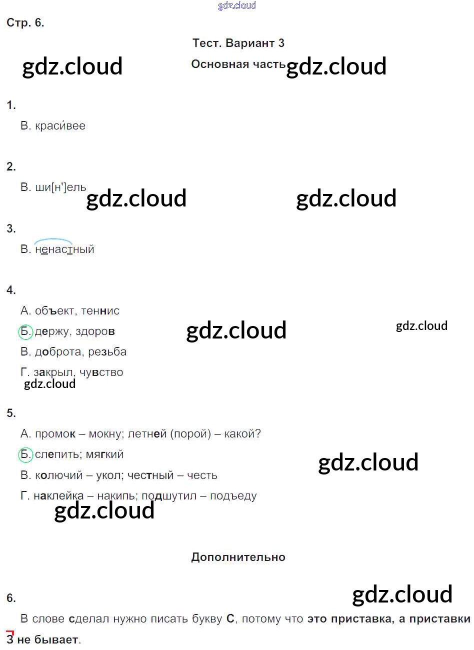 Ответ на задание 6 Тесты и самостоятельные работы для текущего контроля Русский язык за 4 (четвертый) класс Калинина, Желтовская Планета знаний 2017