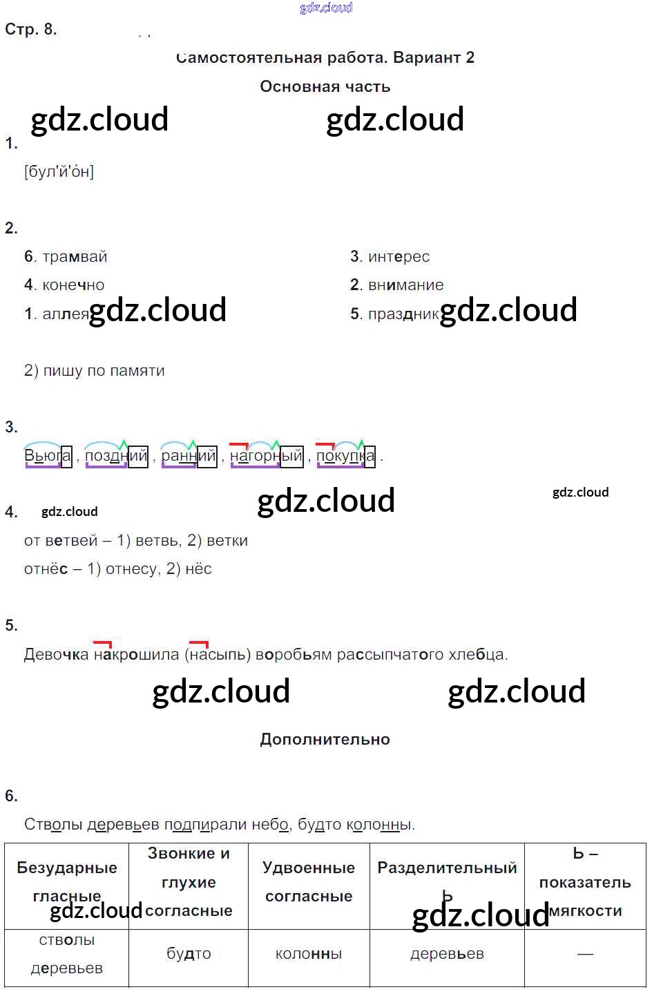 Ответ на задание 8 Тесты и самостоятельные работы для текущего контроля Русский язык за 4 (четвертый) класс Калинина, Желтовская Планета знаний 2017