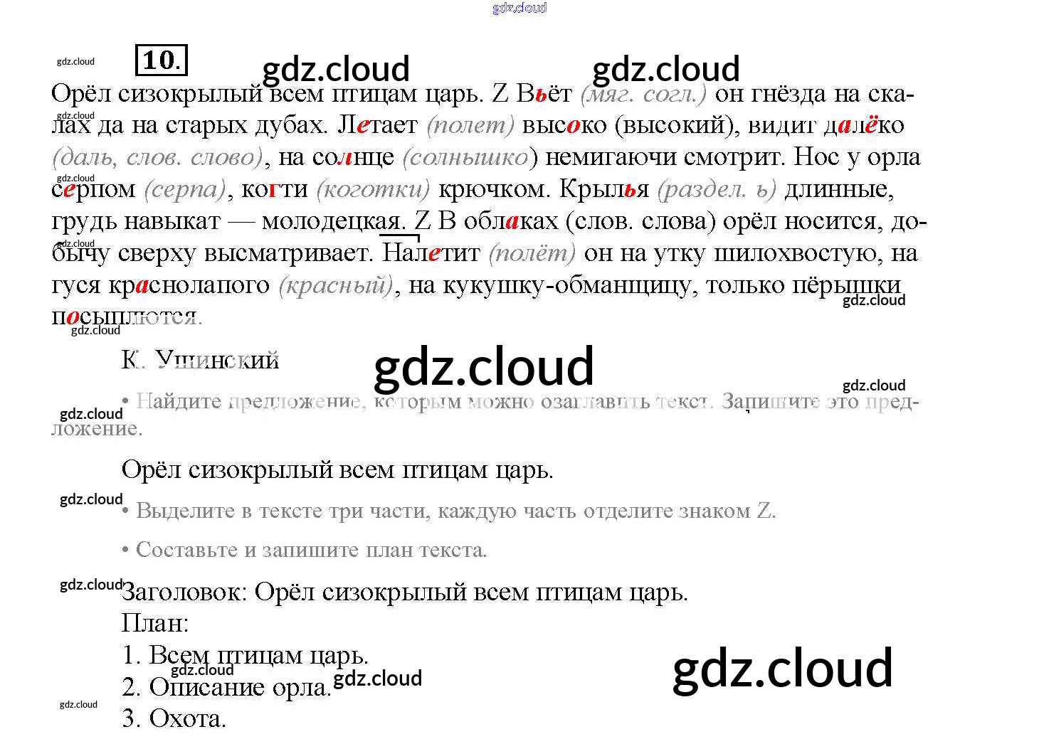 Ответ на задание 10 Рабочая тетрадь Русский язык за 4 (четвертый) класс Канакина Школа России 2013 Часть 1, 2