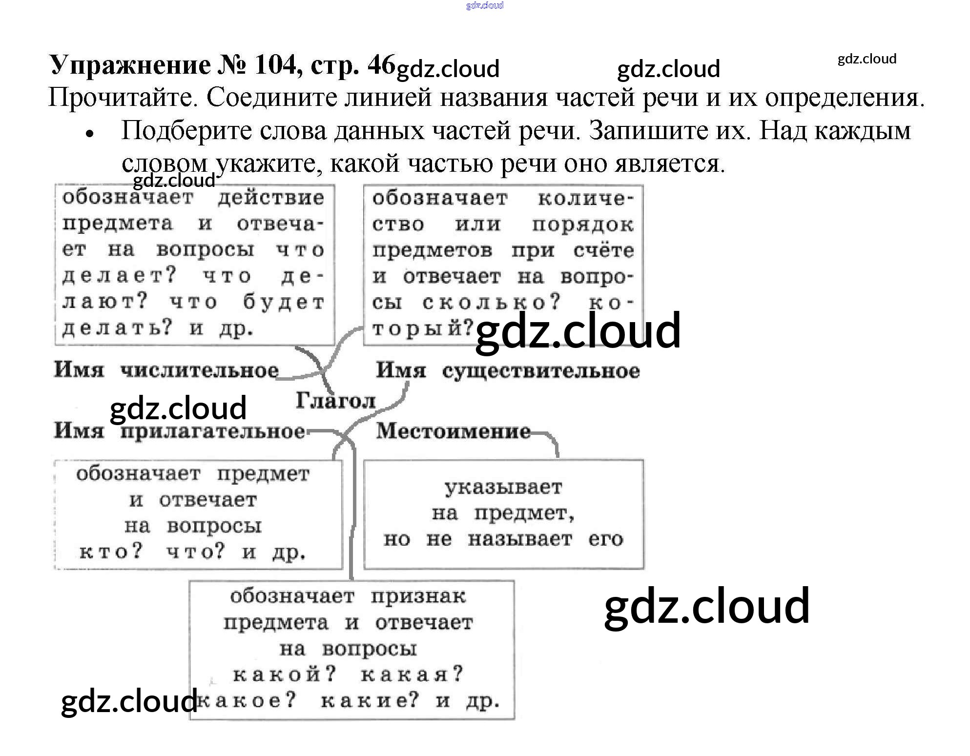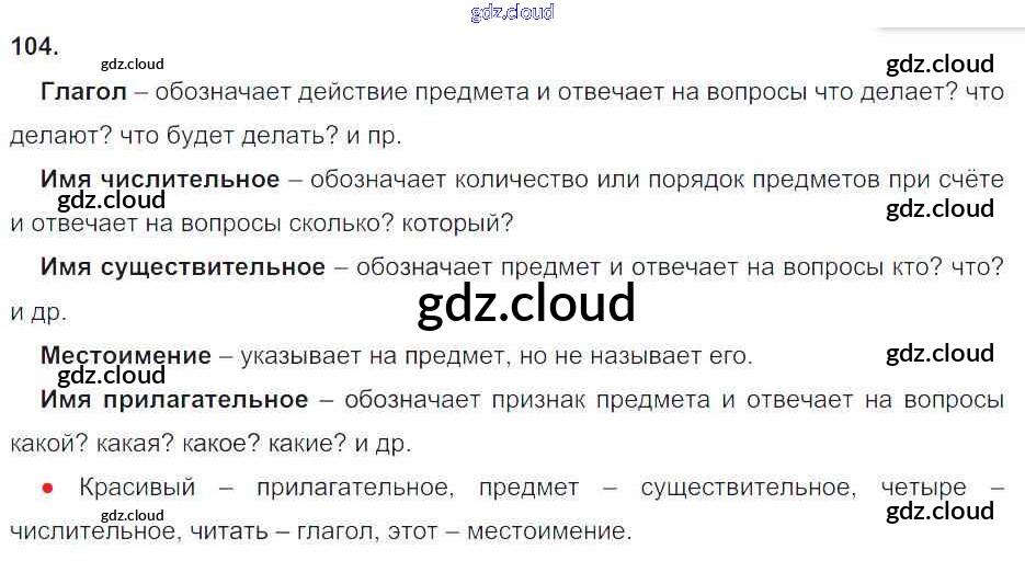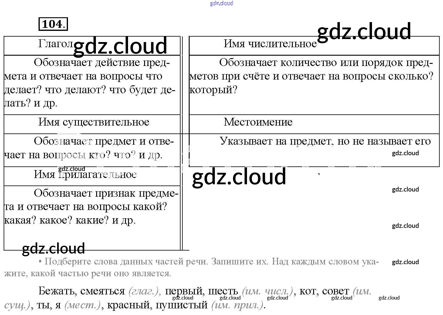Ответ на задание 104 Рабочая тетрадь Русский язык за 4 (четвертый) класс Канакина Школа России 2013 Часть 1, 2