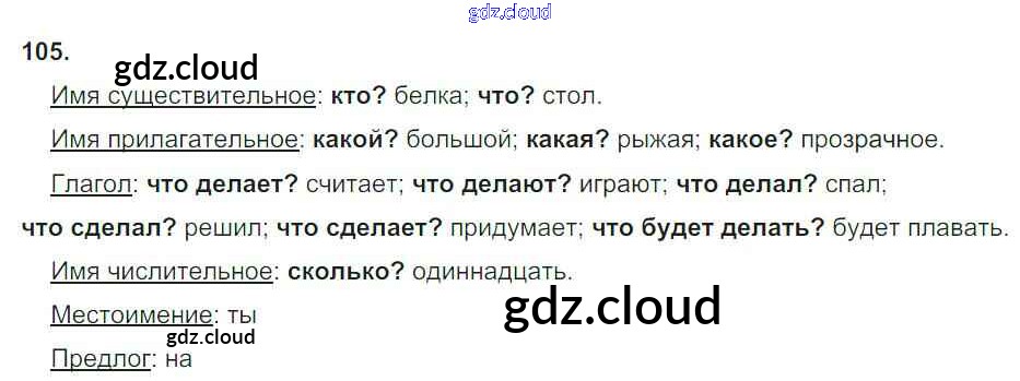 Ответ на задание 105 Рабочая тетрадь Русский язык за 4 (четвертый) класс Канакина Школа России 2013 Часть 1, 2