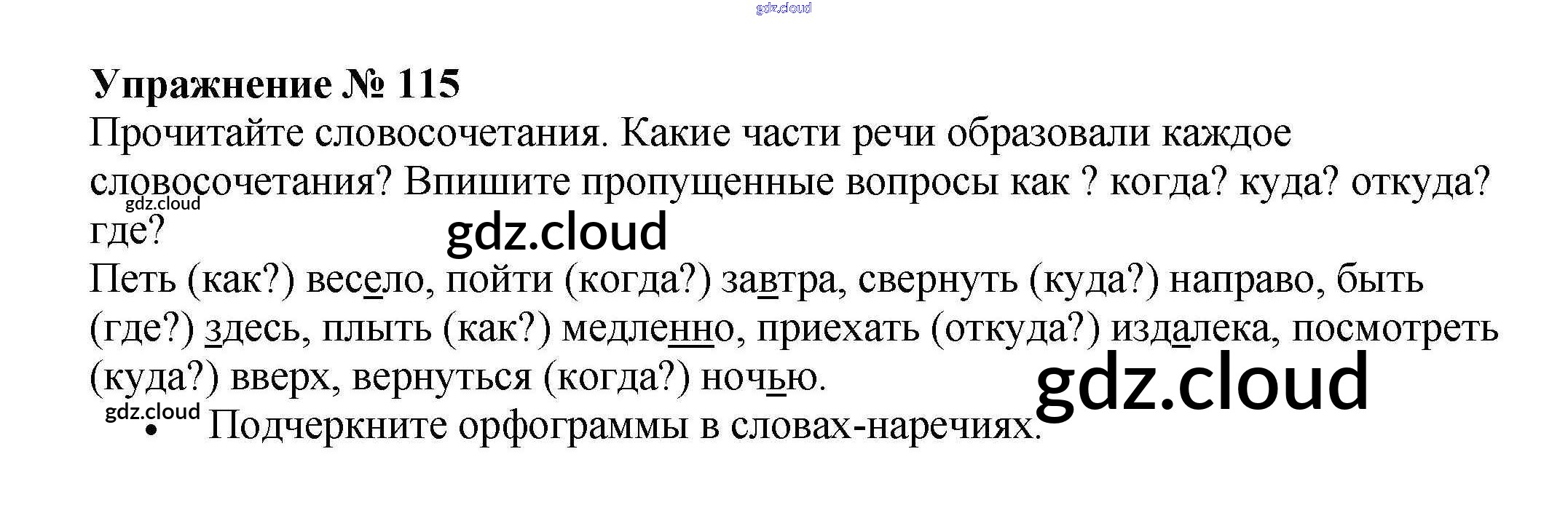 Ответ на задание 115 Рабочая тетрадь Русский язык за 4 (четвертый) класс Канакина Школа России 2013 Часть 1, 2