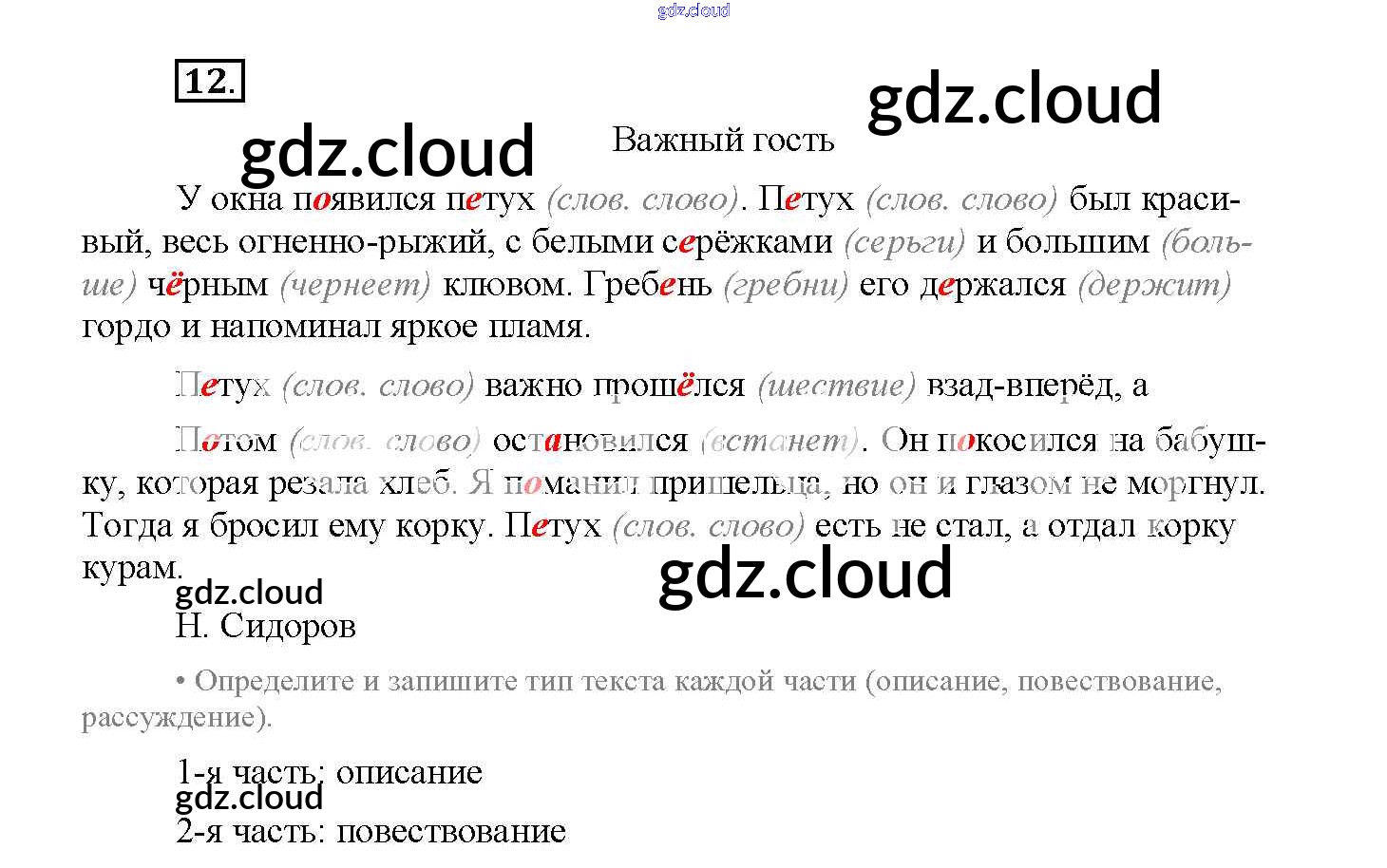 Ответ на задание 12 Рабочая тетрадь Русский язык за 4 (четвертый) класс Канакина Школа России 2013 Часть 1, 2