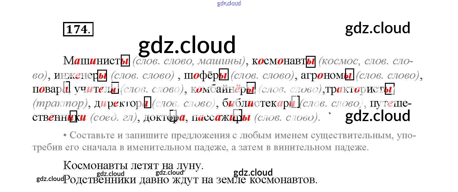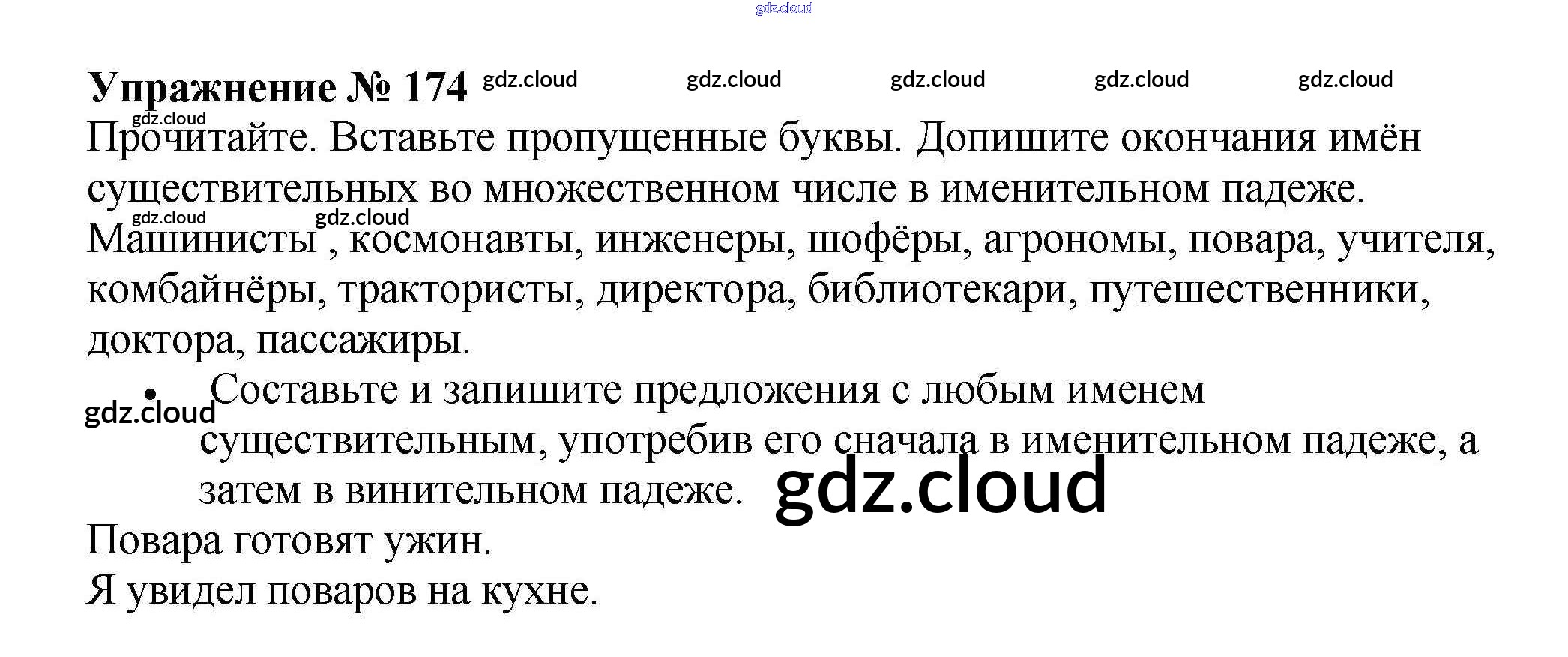 Ответ на задание 174 Рабочая тетрадь Русский язык за 4 (четвертый) класс Канакина Школа России 2013 Часть 1, 2