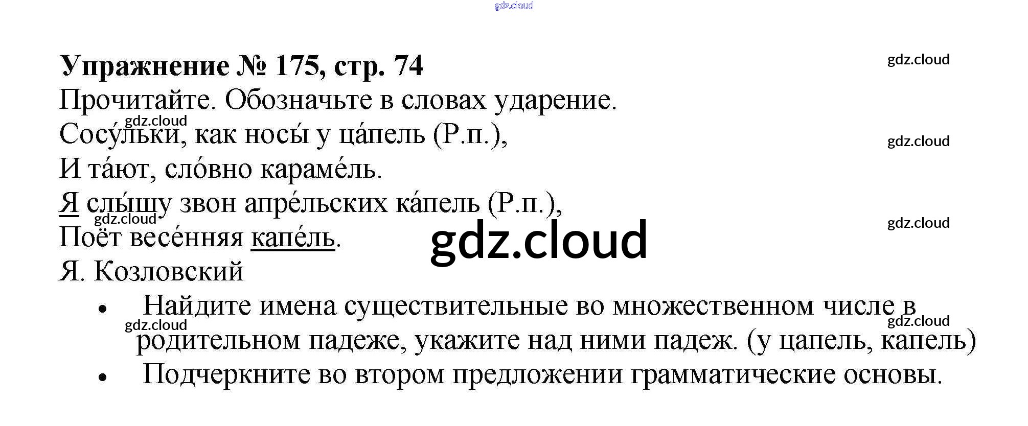 Ответ на задание 175 Рабочая тетрадь Русский язык за 4 (четвертый) класс Канакина Школа России 2013 Часть 1, 2