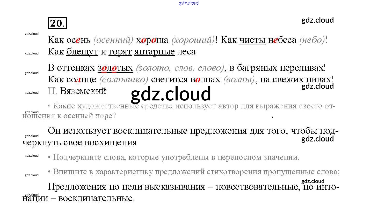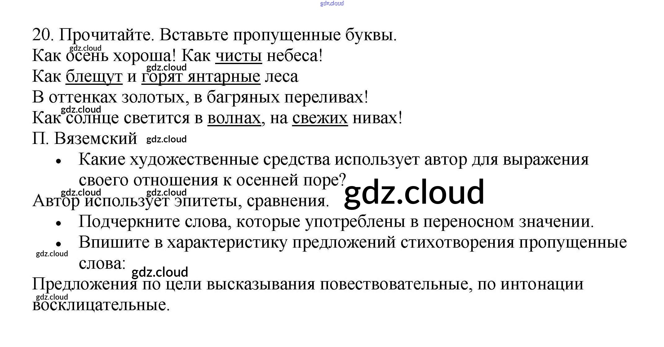 Ответ на задание 20 Рабочая тетрадь Русский язык за 4 (четвертый) класс Канакина Школа России 2013 Часть 1, 2