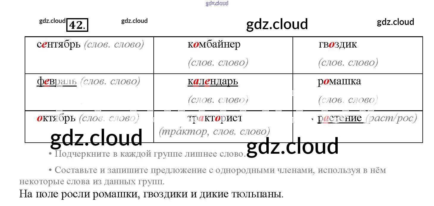 Ответ на задание 42 Рабочая тетрадь Русский язык за 4 (четвертый) класс Канакина Школа России 2013 Часть 1, 2
