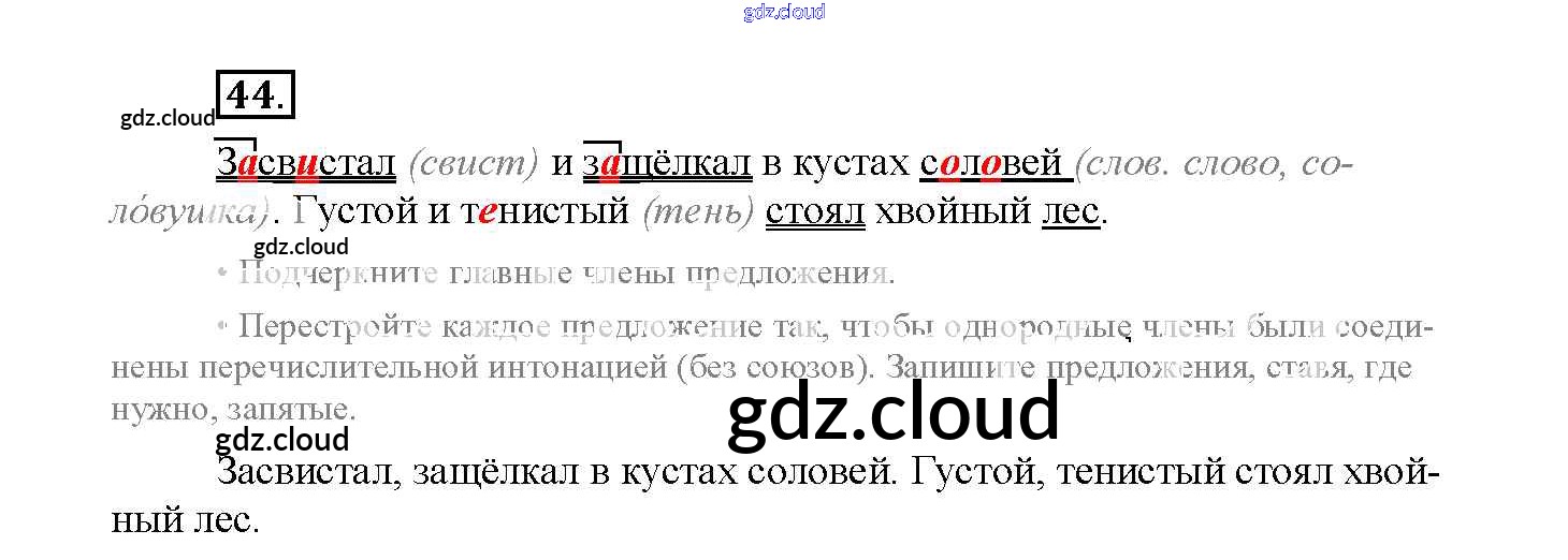 Ответ на задание 44 Рабочая тетрадь Русский язык за 4 (четвертый) класс Канакина Школа России 2013 Часть 1, 2
