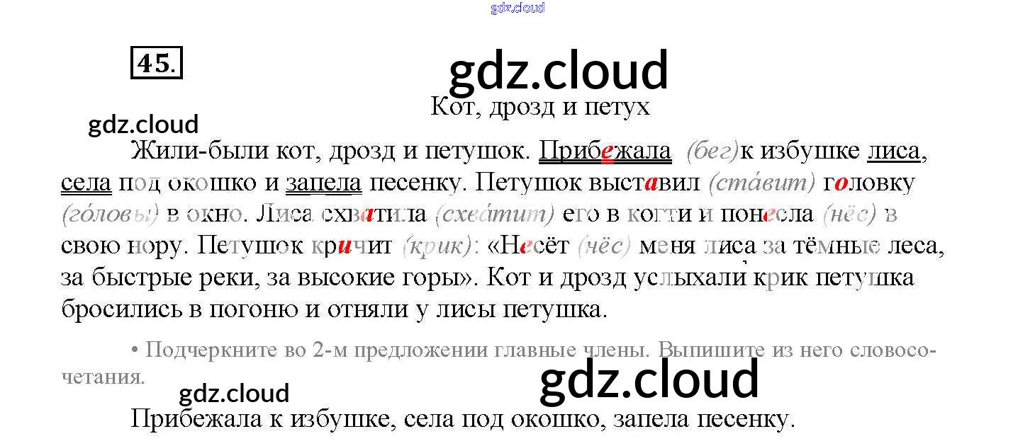 Ответ на задание 45 Рабочая тетрадь Русский язык за 4 (четвертый) класс Канакина Школа России 2013 Часть 1, 2