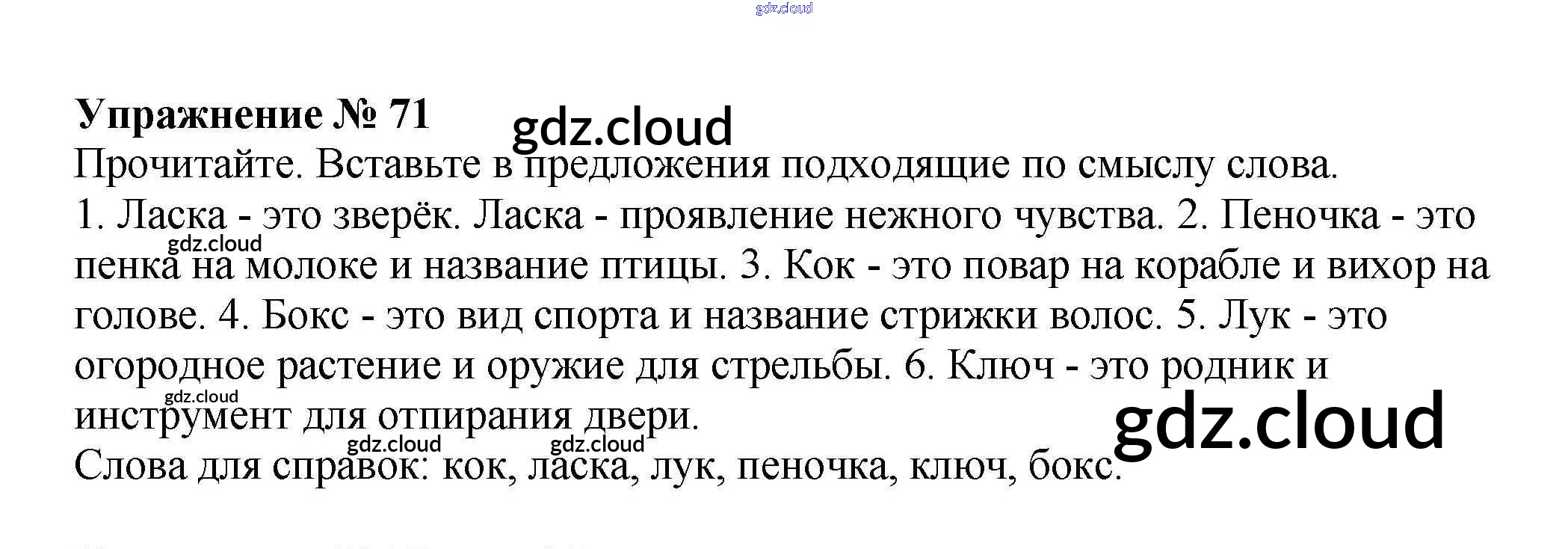 Ответ на задание 71 Рабочая тетрадь Русский язык за 4 (четвертый) класс Канакина Школа России 2013 Часть 1, 2
