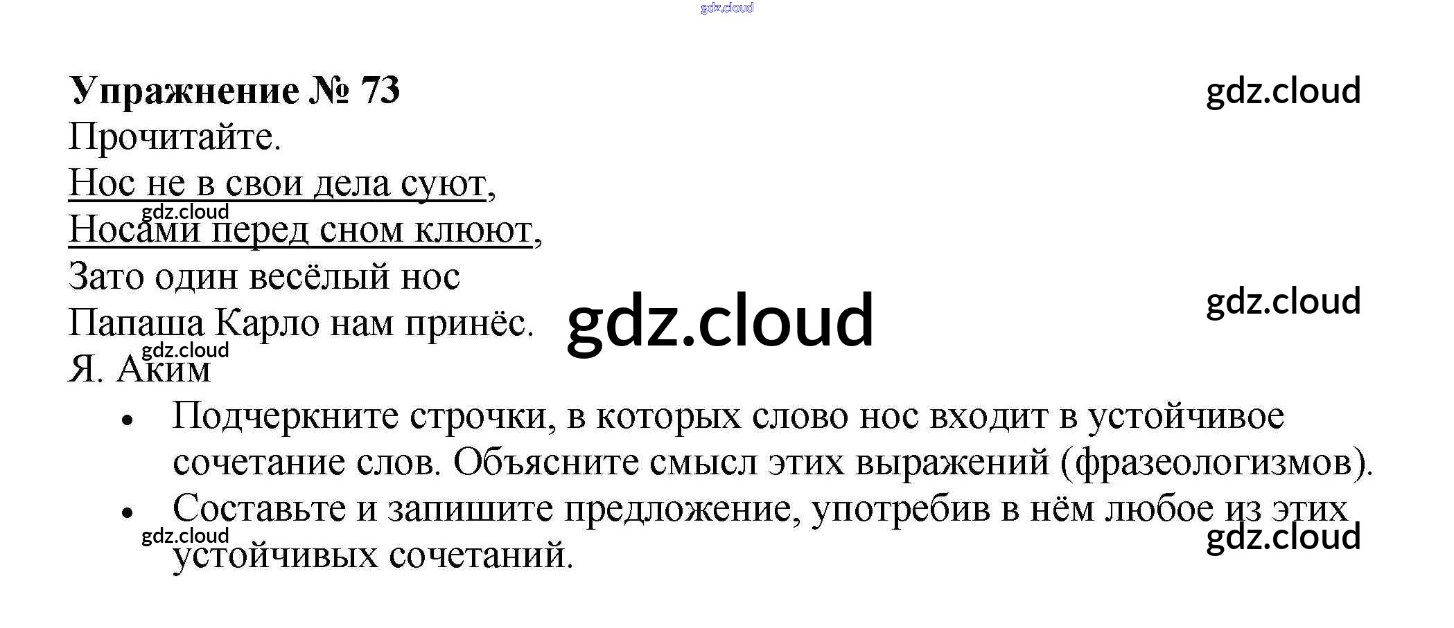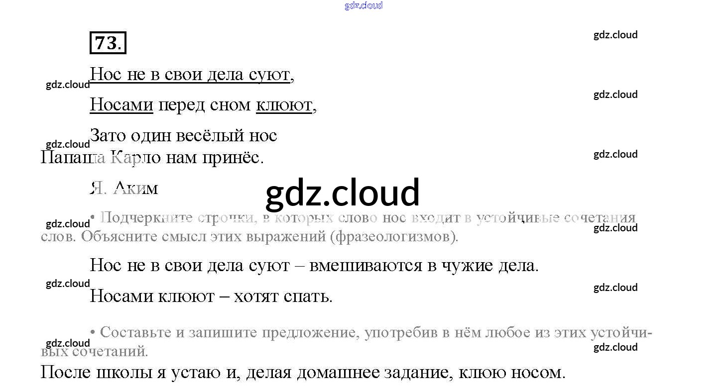 Ответ на задание 73 Рабочая тетрадь Русский язык за 4 (четвертый) класс Канакина Школа России 2013 Часть 1, 2