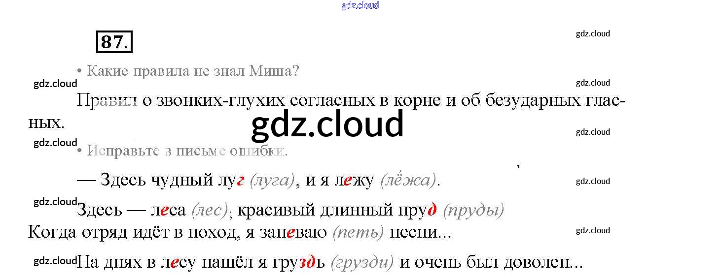 Ответ на задание 87 Рабочая тетрадь Русский язык за 4 (четвертый) класс Канакина Школа России 2013 Часть 1, 2