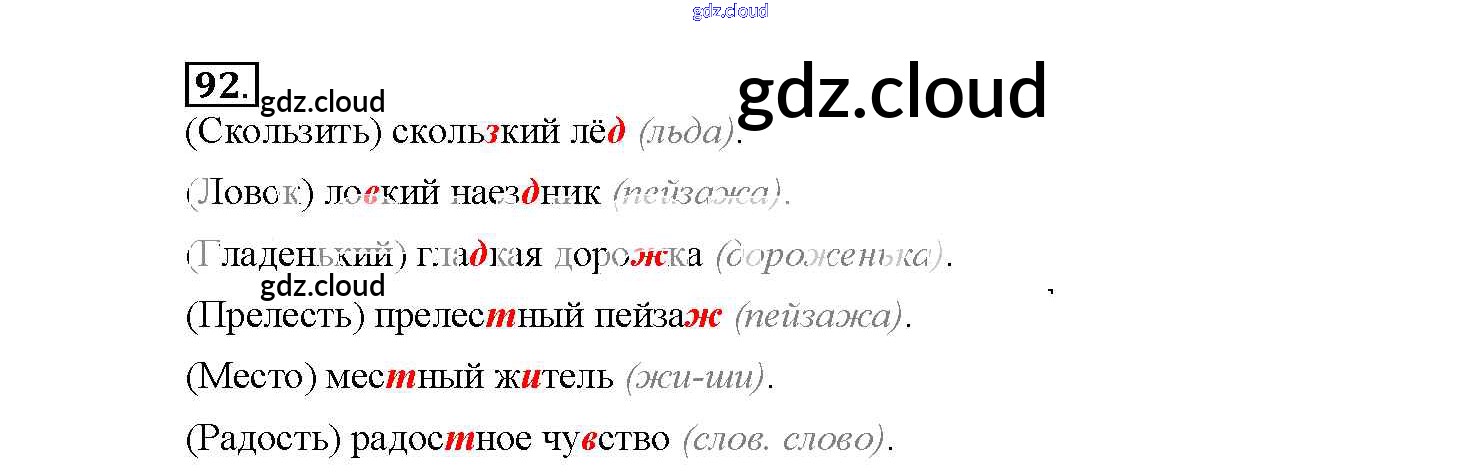 Ответ на задание 92 Рабочая тетрадь Русский язык за 4 (четвертый) класс Канакина Школа России 2013 Часть 1, 2