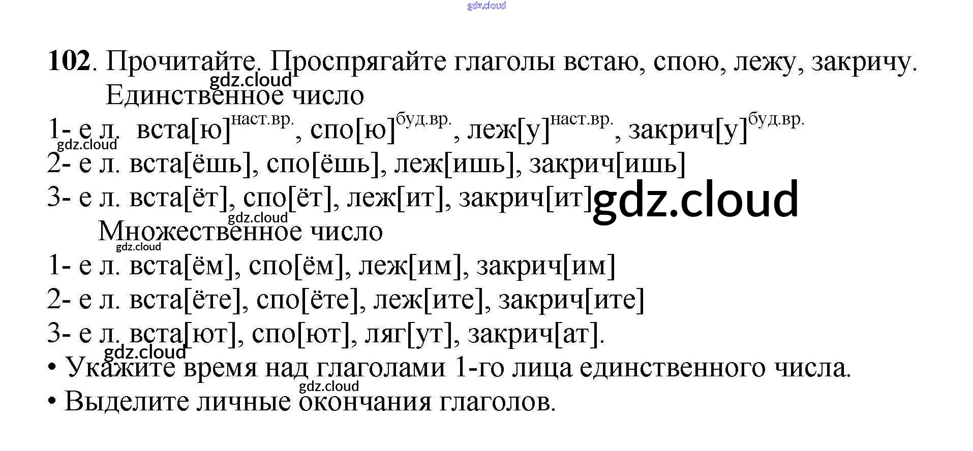 Ответ на задание 102 Рабочая тетрадь Русский язык за 4 (четвертый) класс Канакина Школа России 2013 Часть 1, 2