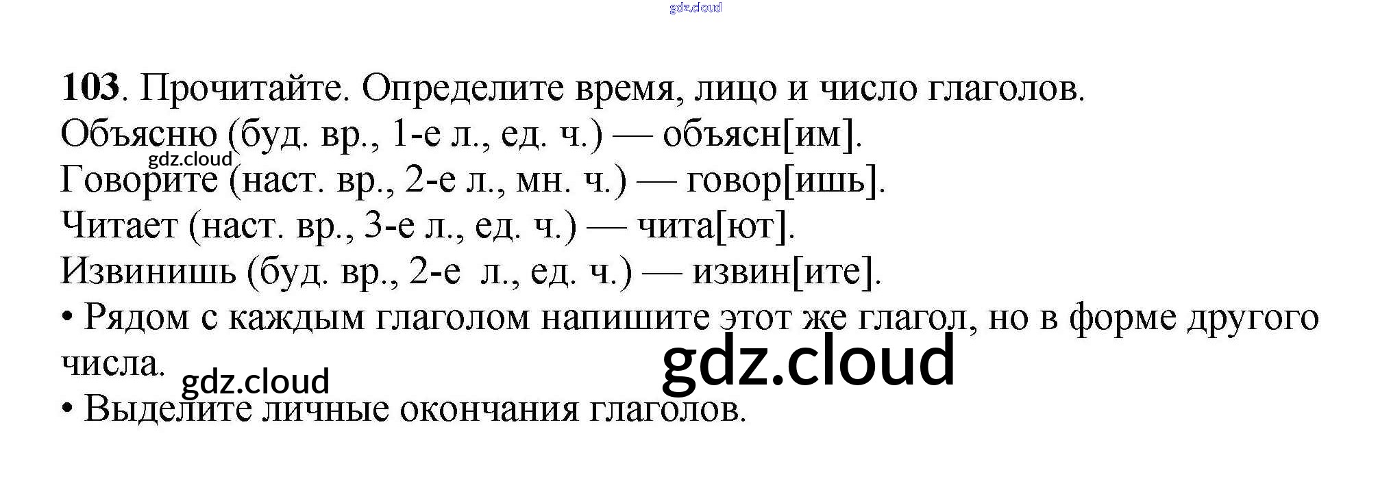 Ответ на задание 103 Рабочая тетрадь Русский язык за 4 (четвертый) класс Канакина Школа России 2013 Часть 1, 2