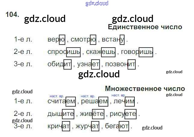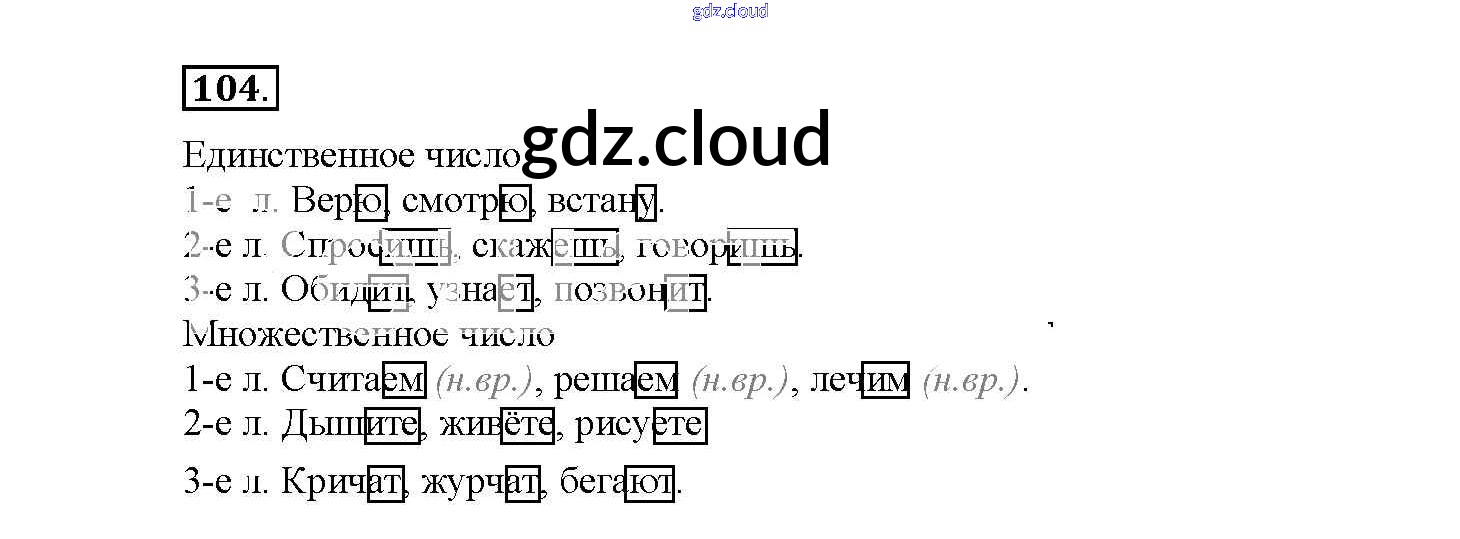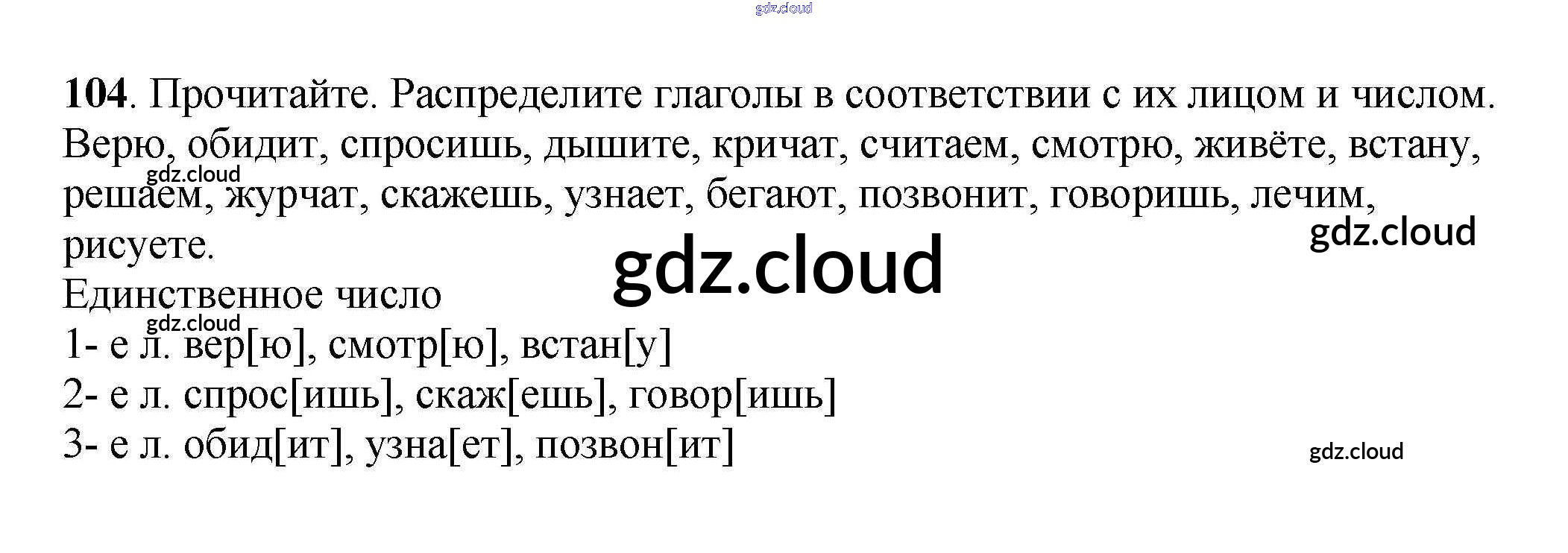 Ответ на задание 104 Рабочая тетрадь Русский язык за 4 (четвертый) класс Канакина Школа России 2013 Часть 1, 2