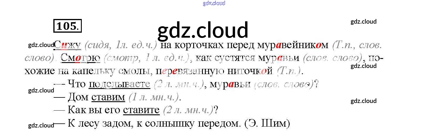 Ответ на задание 105 Рабочая тетрадь Русский язык за 4 (четвертый) класс Канакина Школа России 2013 Часть 1, 2