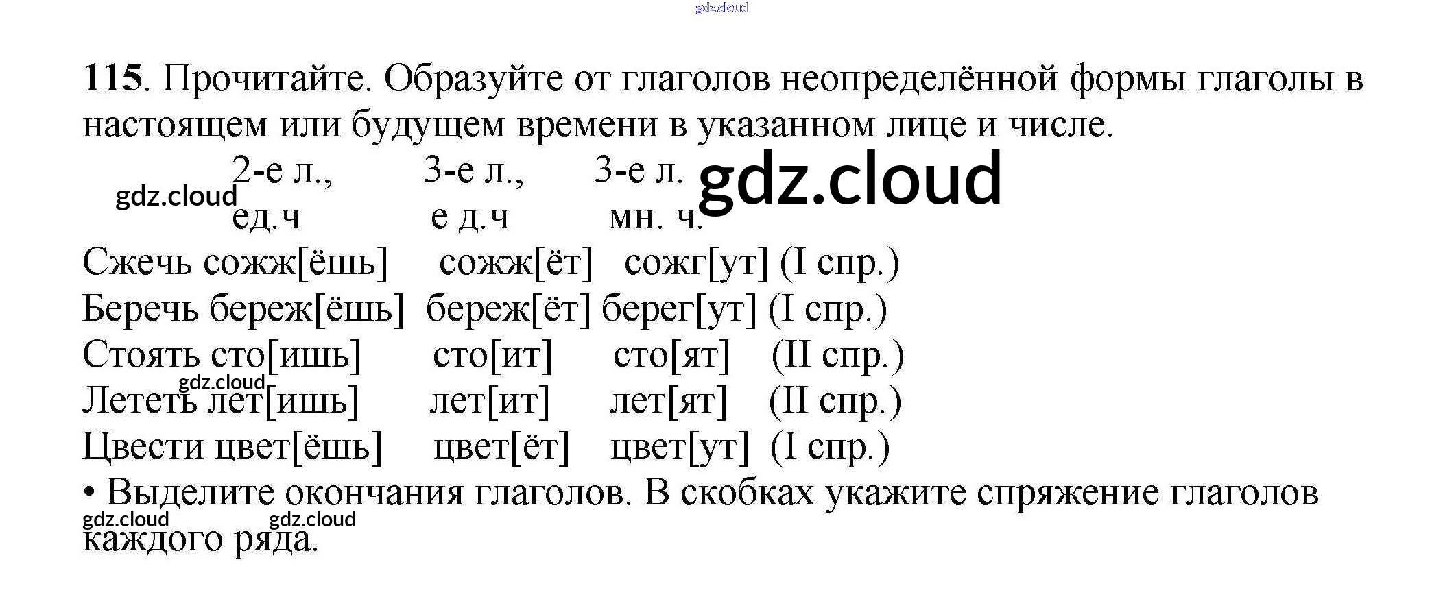 Ответ на задание 115 Рабочая тетрадь Русский язык за 4 (четвертый) класс Канакина Школа России 2013 Часть 1, 2