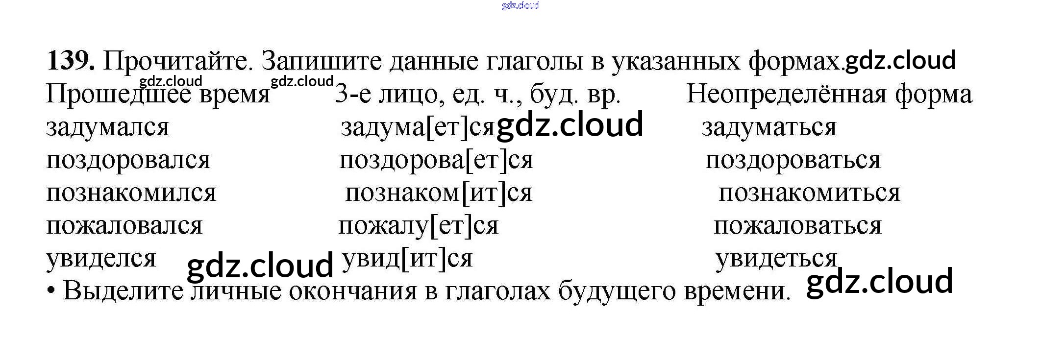 Ответ на задание 139 Рабочая тетрадь Русский язык за 4 (четвертый) класс Канакина Школа России 2013 Часть 1, 2