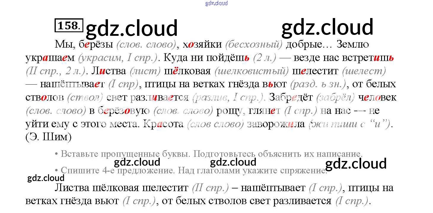 Ответ на задание 158 Рабочая тетрадь Русский язык за 4 (четвертый) класс Канакина Школа России 2013 Часть 1, 2