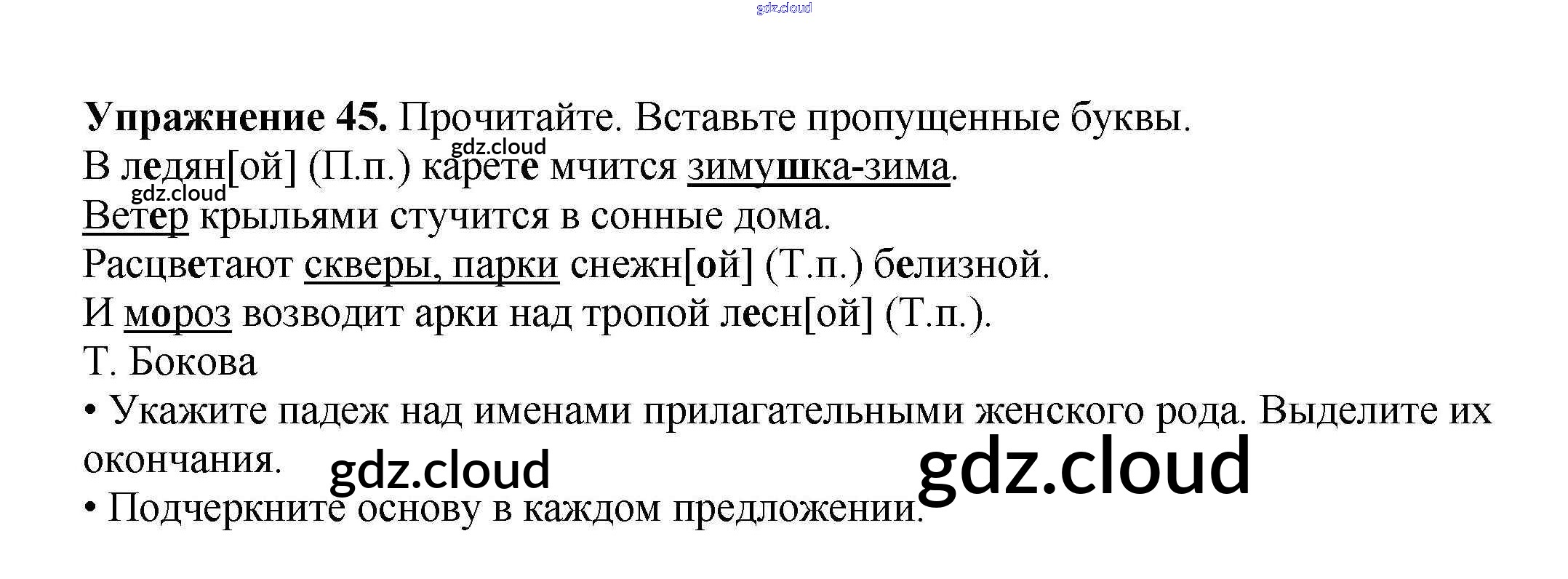Ответ на задание 45 Рабочая тетрадь Русский язык за 4 (четвертый) класс Канакина Школа России 2013 Часть 1, 2