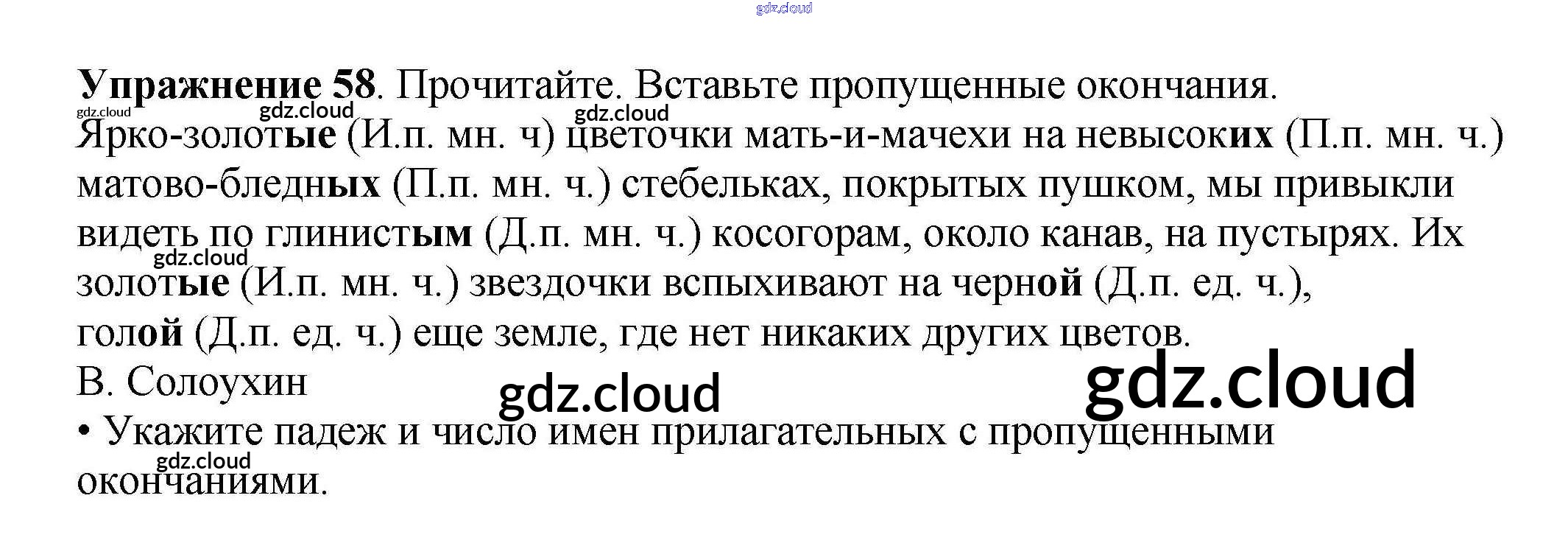 Ответ на задание 58 Рабочая тетрадь Русский язык за 4 (четвертый) класс Канакина Школа России 2013 Часть 1, 2