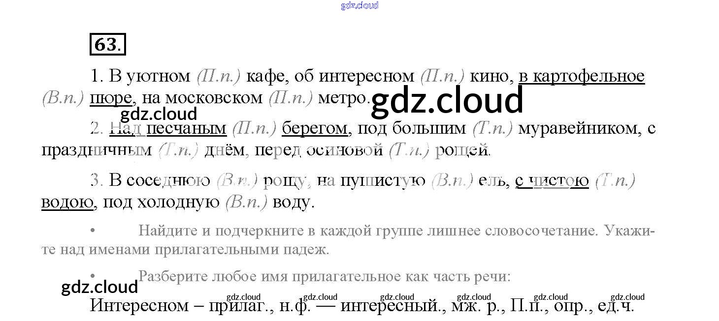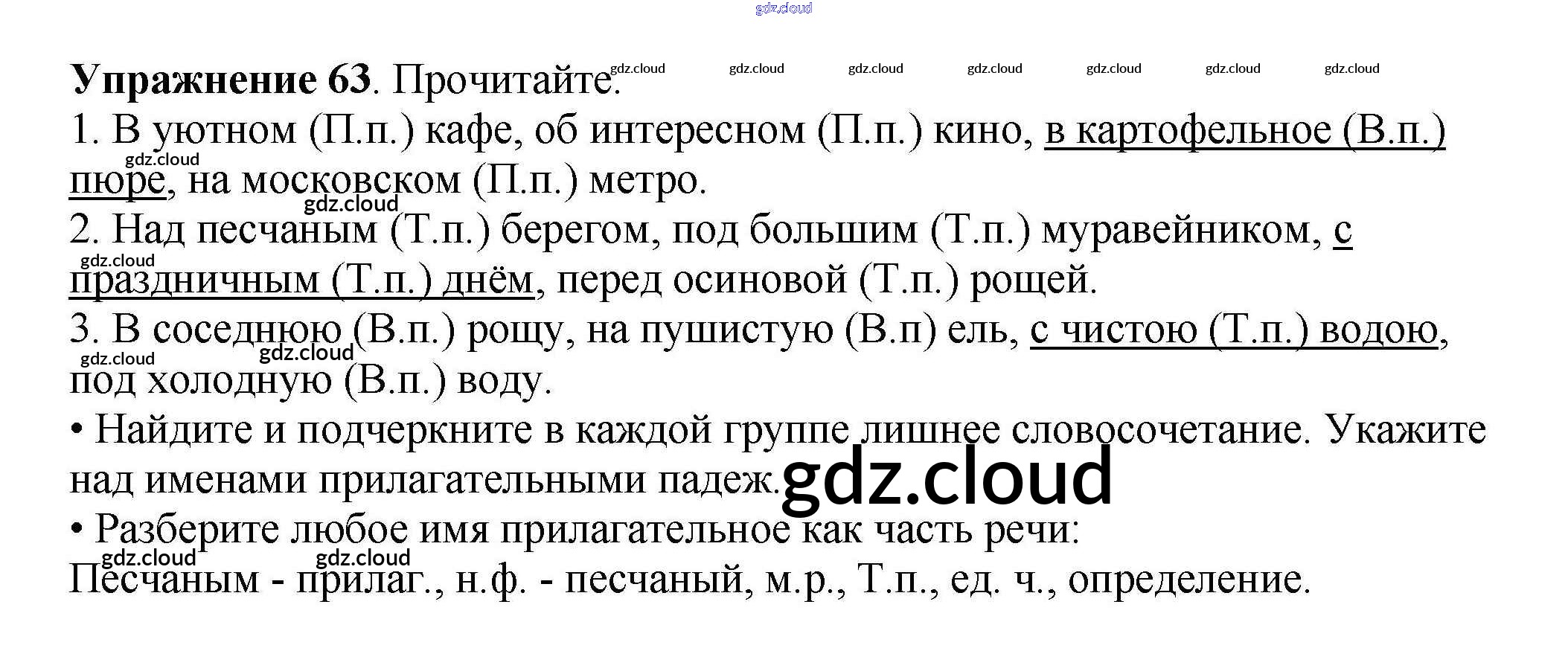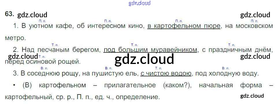 Ответ на задание 63 Рабочая тетрадь Русский язык за 4 (четвертый) класс Канакина Школа России 2013 Часть 1, 2