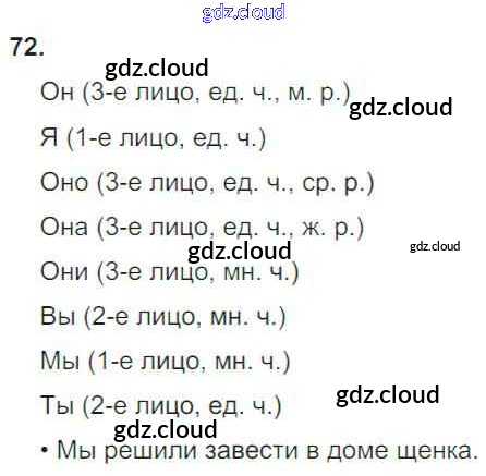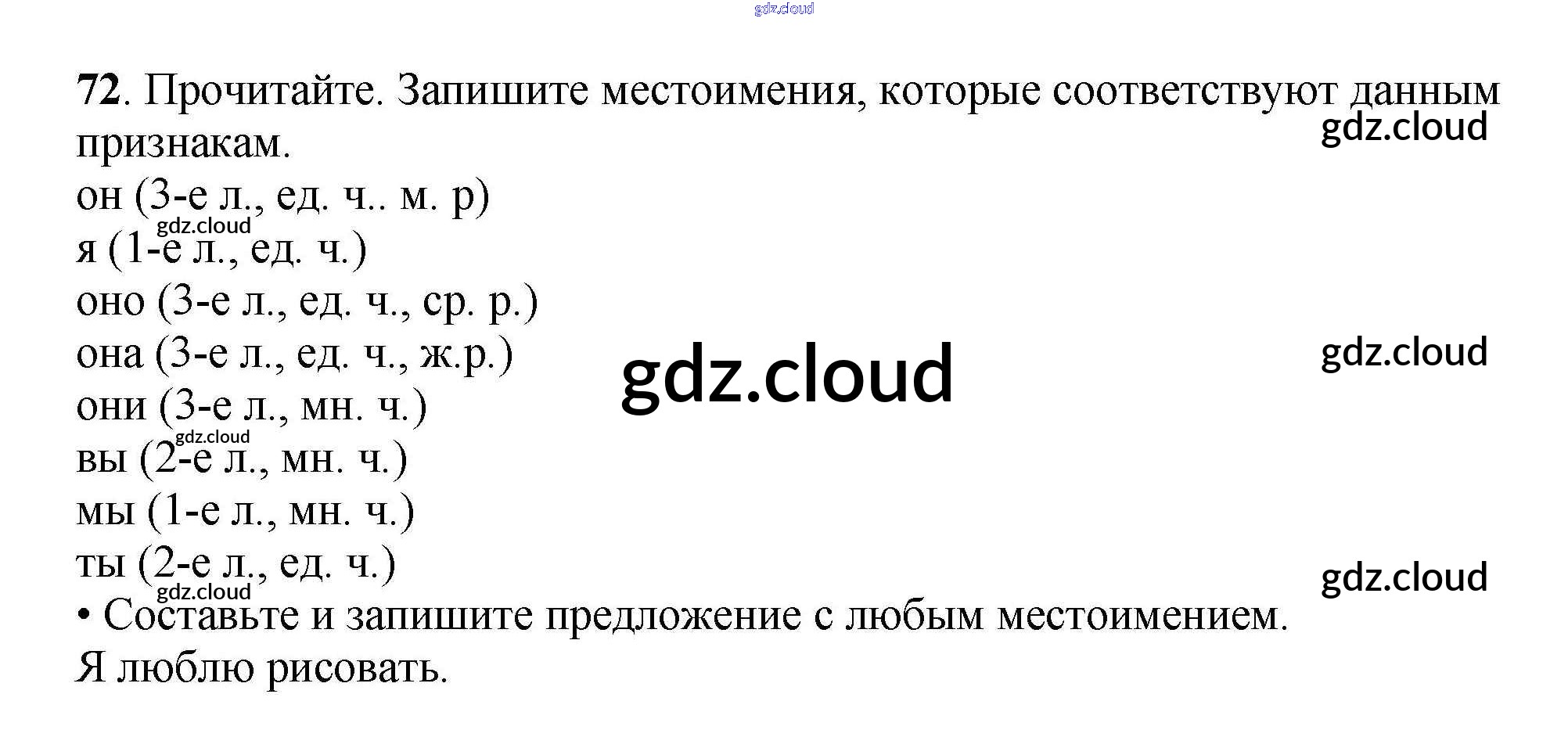 Ответ на задание 72 Рабочая тетрадь Русский язык за 4 (четвертый) класс Канакина Школа России 2013 Часть 1, 2