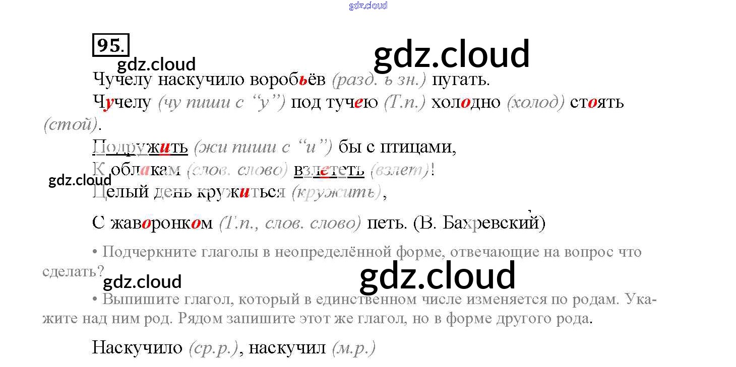Ответ на задание 95 Рабочая тетрадь Русский язык за 4 (четвертый) класс Канакина Школа России 2013 Часть 1, 2