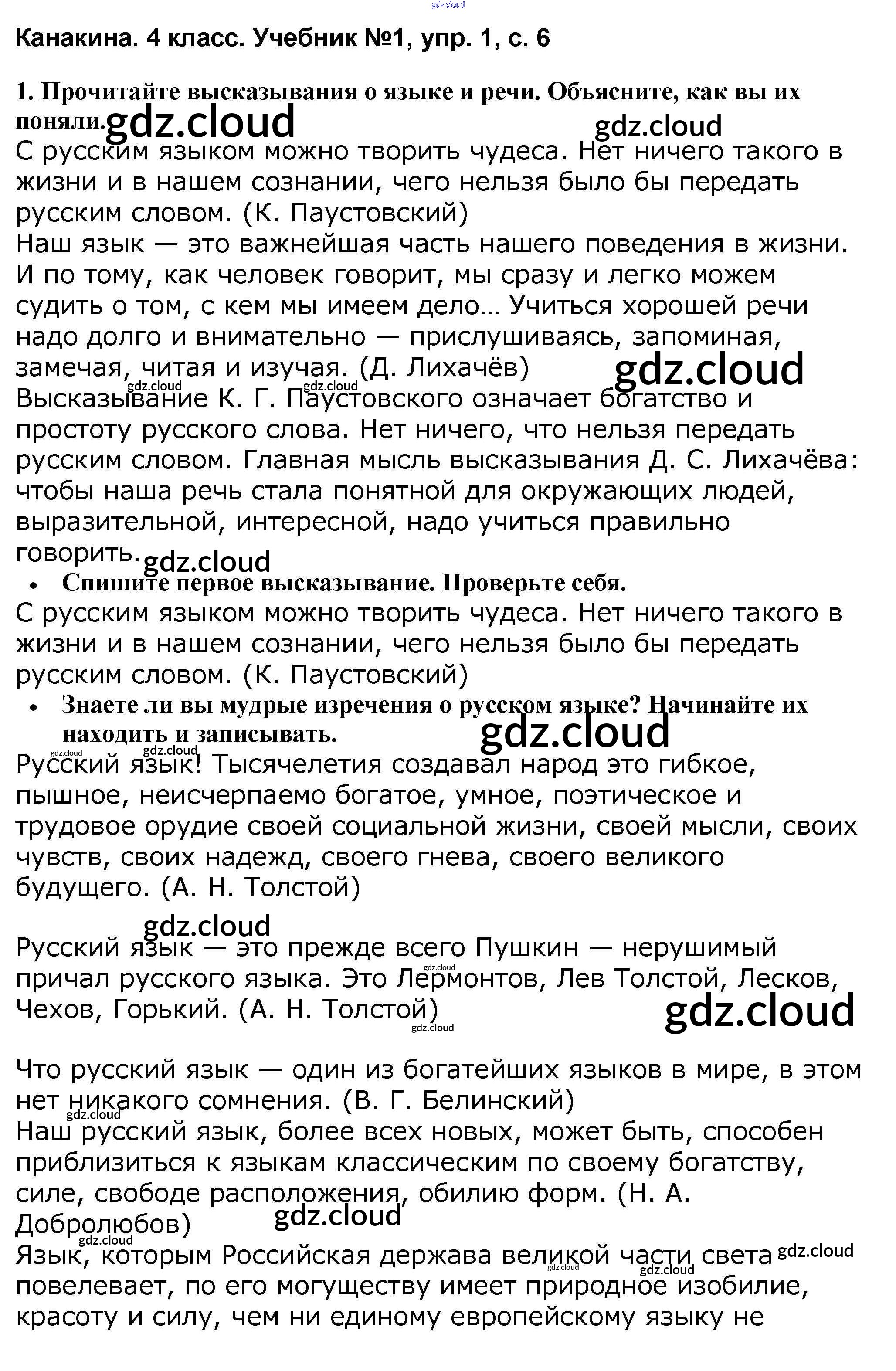 Ответ на задание 1 Учебник Русский язык за 4 (четвертый) класс Канакина, Горецкий Школа России 2015 Часть 1, 2