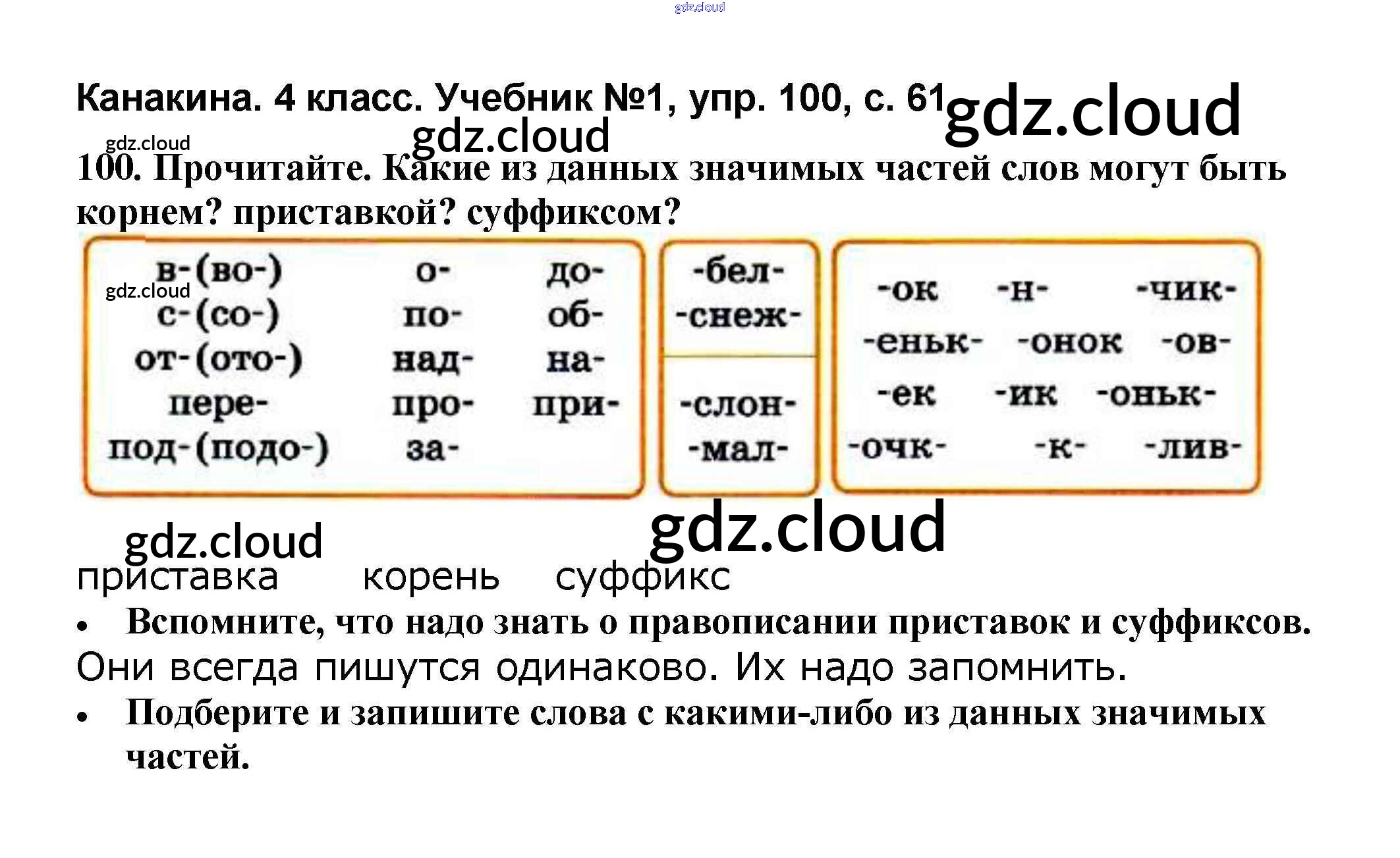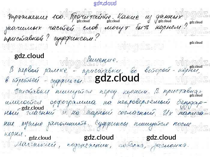 Ответ на задание 100 Учебник Русский язык за 4 (четвертый) класс Канакина, Горецкий Школа России 2015 Часть 1, 2