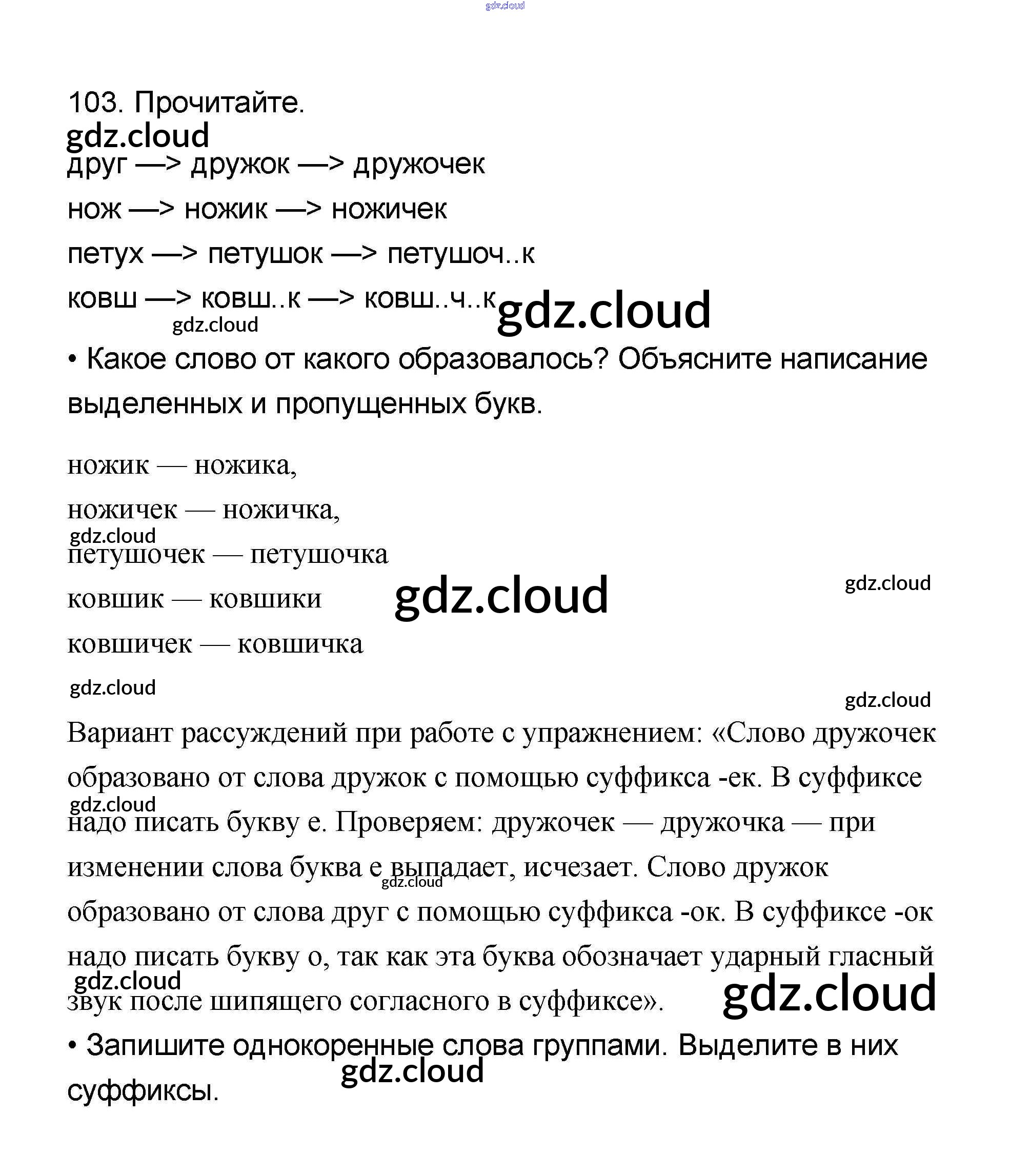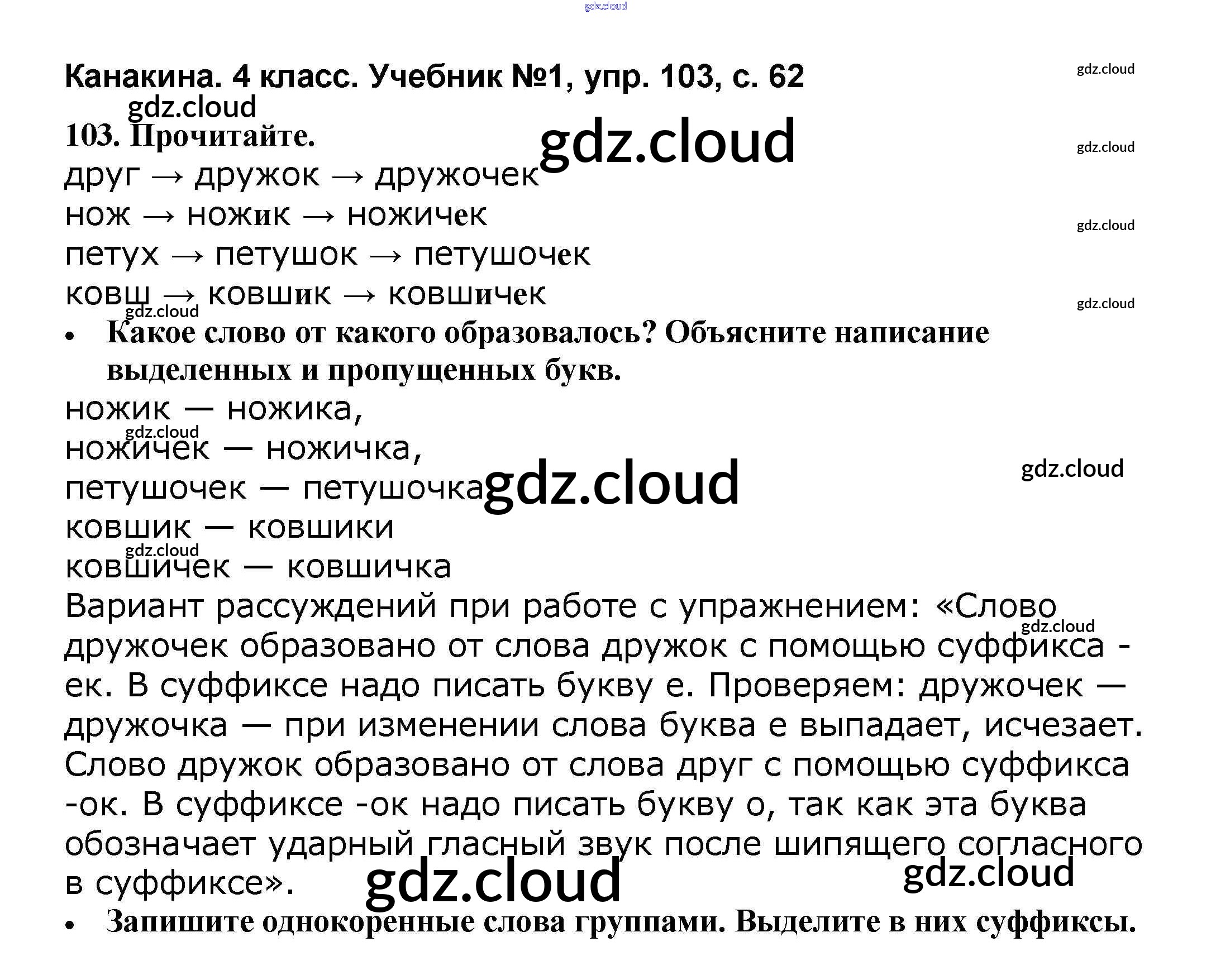 Ответ на задание 103 Учебник Русский язык за 4 (четвертый) класс Канакина, Горецкий Школа России 2015 Часть 1, 2